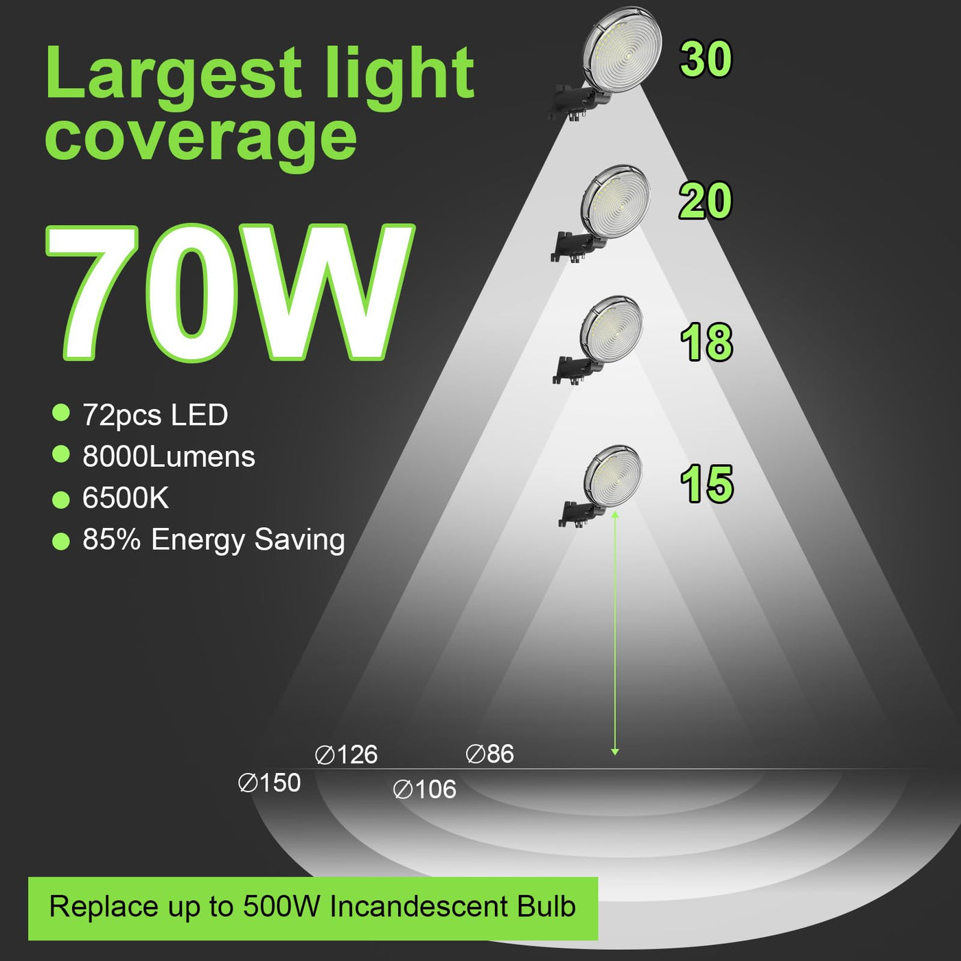 Karjoefar Led Barn Light, 70W 8000Lm Dusk To Dawn Outdoor Lighting With Photocell 6500K Daylight, Ip65 Waterproof Adjustable Angle Outdoor Security Flood Lights For Barn Backyard Garage