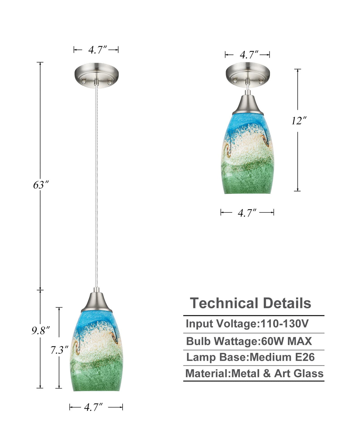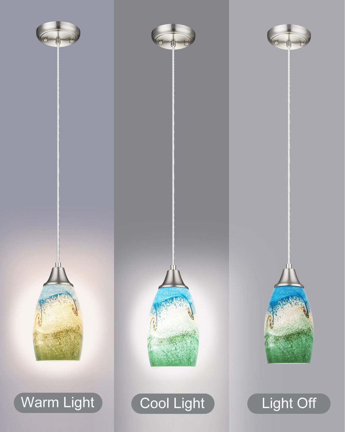 Mini Glass Pendant Light Hand-Crafted Art Glass Pendant Lights Fixtures With Brushed Nickel Finished Ceiling Hanging Lamp Adjustable Cord For Kitchen Island Bed Room Hallway Dining Room Kitchen Island Lighting