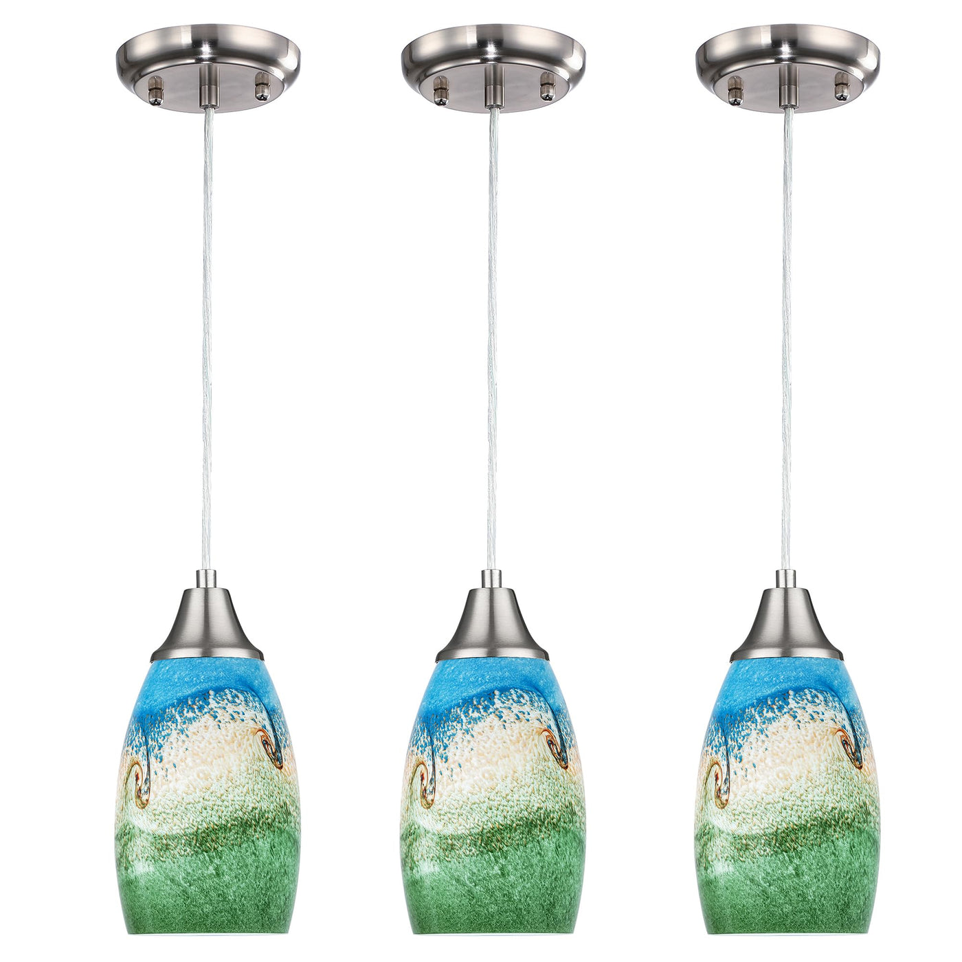 Karyfine 3Pack Mini Pendant Lights Kitchen Island Hand Blown Art Glass Hanging Ceiling Pendant Light Over Kitchen Sink Glass Pen