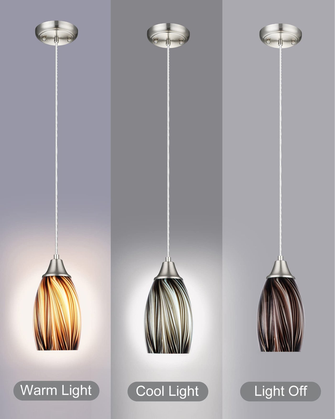 Mini Glass Pendant Light,Hand-Crafted Art Glass Pendant Hanging Light Fixtures With Brushed Nickel Finished Ceiling Hanging Lamp Adjustable Cord For Kitchen Island, Bed Room, Hallway, Dining Room