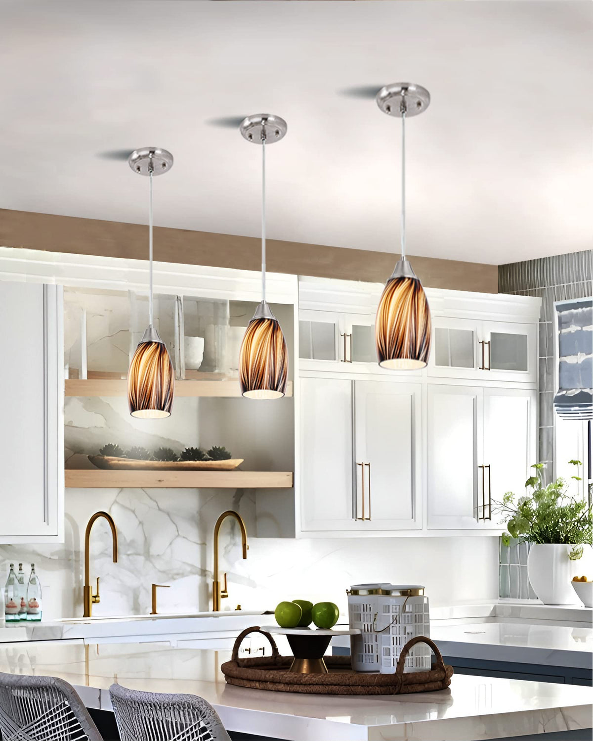 Karyfine Mini Pendant Lights Kitchen Island,Blown Art Glass Pendant Light Fixtures With Brush Nickel Finish Coffee Brown Hanging