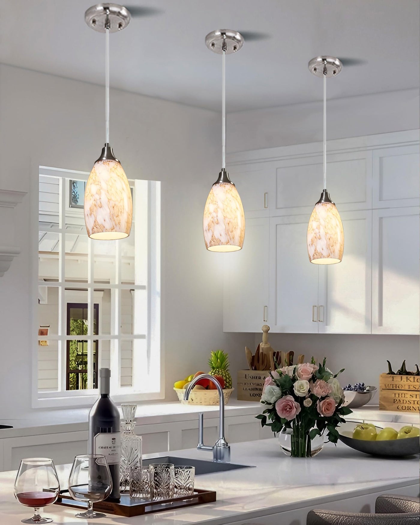Q: Where can I install this pendant light?A: This hand-blown art glass pendant light is versatile and can be installed in multiple locations, including hallways, stairways, foyers, entryways, kitchens, home offices, dining rooms, living rooms, bedrooms, as well as cafes and clubs.