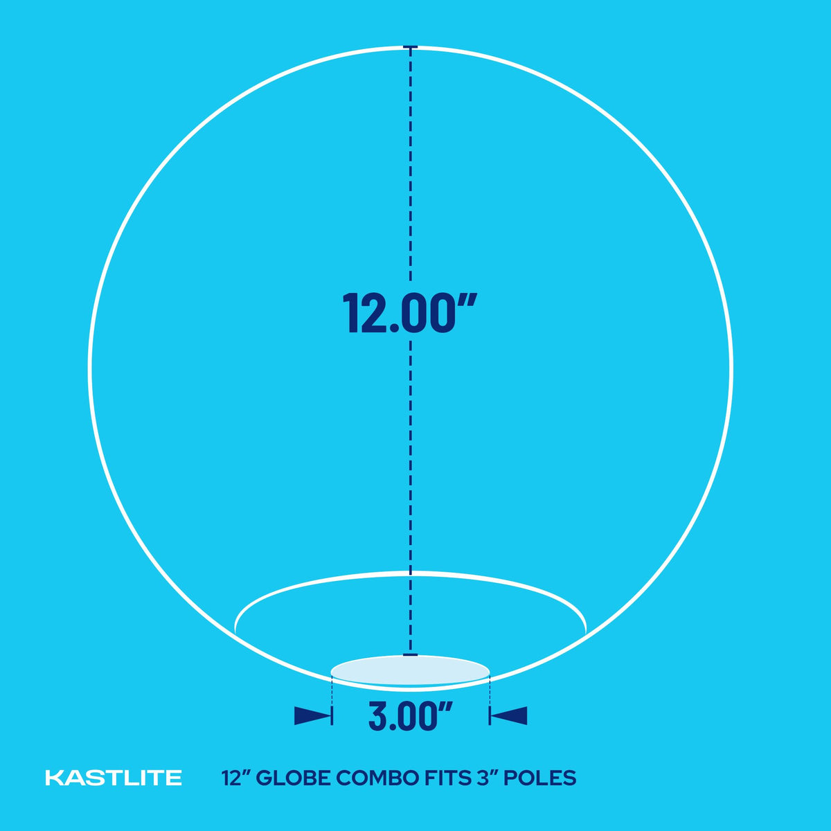 Q: What are the dimensions of the KastLite 12" Outdoor Light Post Globe?A: The KastLite 12" Outdoor Light Post Globe has a diameter of 12.01 inches, making it compatible with 3" diameter pole lights.
