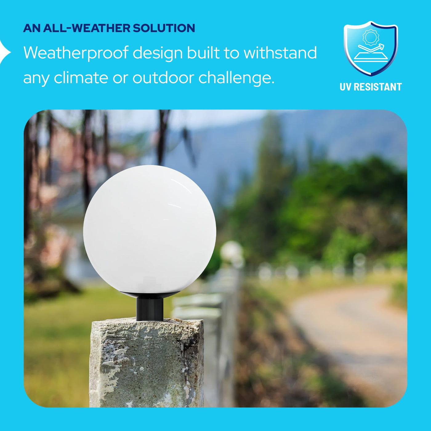 Q: Is the light fixture suitable for all weather conditions?A: Yes, the outdoor lamp post globe is designed to be water and weather-resistant, ensuring durability and reliable performance in various outdoor conditions.