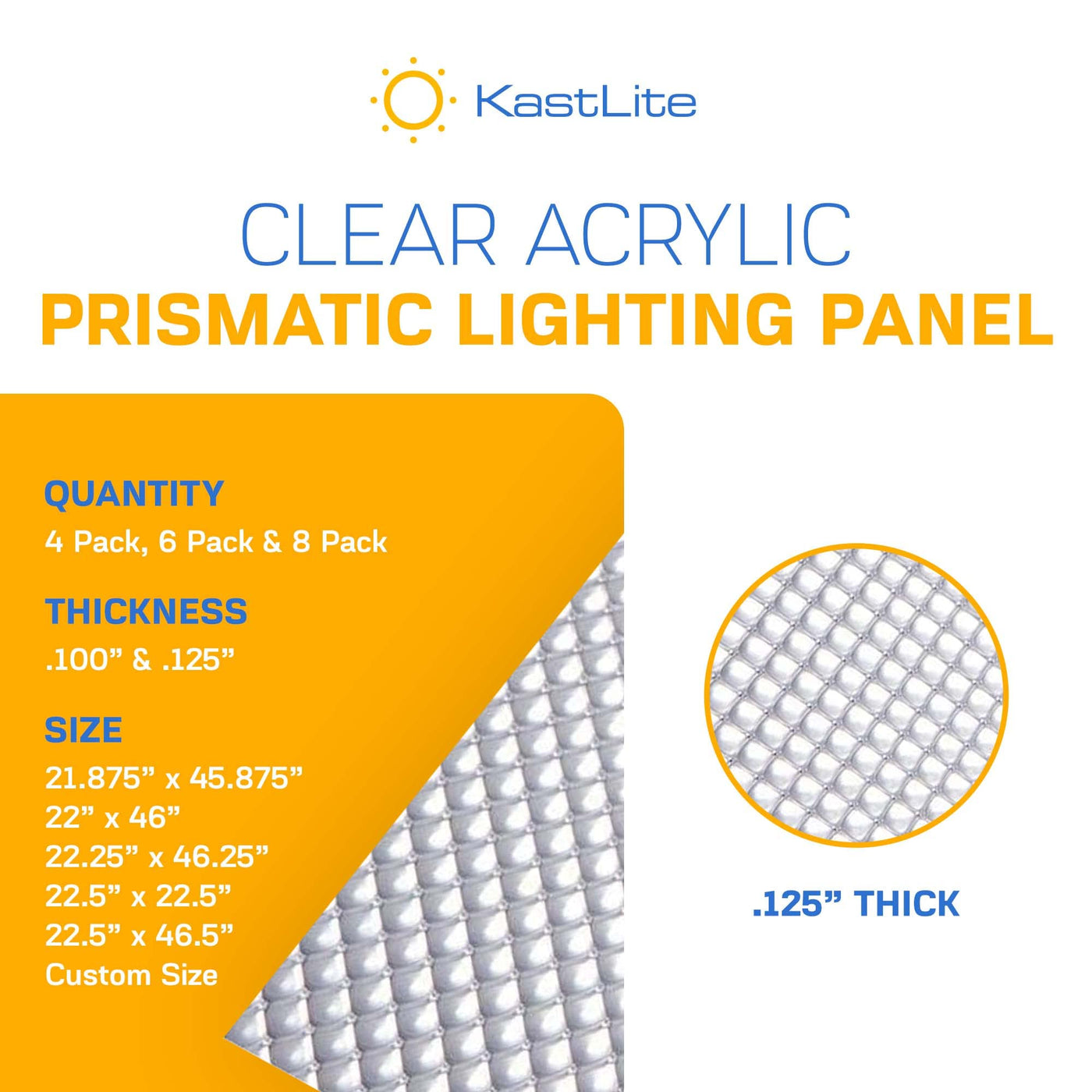KastLite 4-Pack Fluorescent Light Covers | Clear Prismatic Acrylic Diffuser | Custom Size x 0.125in Thick | Model KL-PLPC-4PK