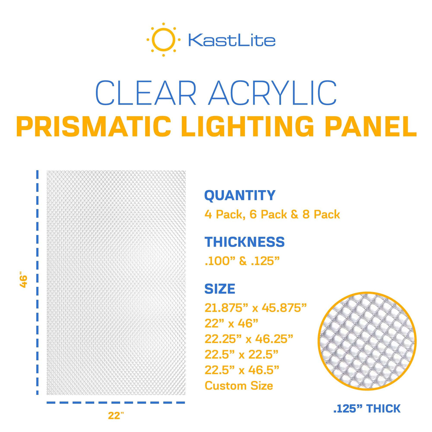 KastLite Prismatic Acrylic Lighting Panels are perfect for anyone looking to upgrade their lighting fixtures. Whether you are a homeowner seeking to improve the aesthetics of your living space or a business owner in need of reliable and efficient lighting solutions, these panels provide a long-lasting and effective choice. Their customizable sizing options ensure a perfect fit for any application, making them a versatile addition to your lighting needs.
