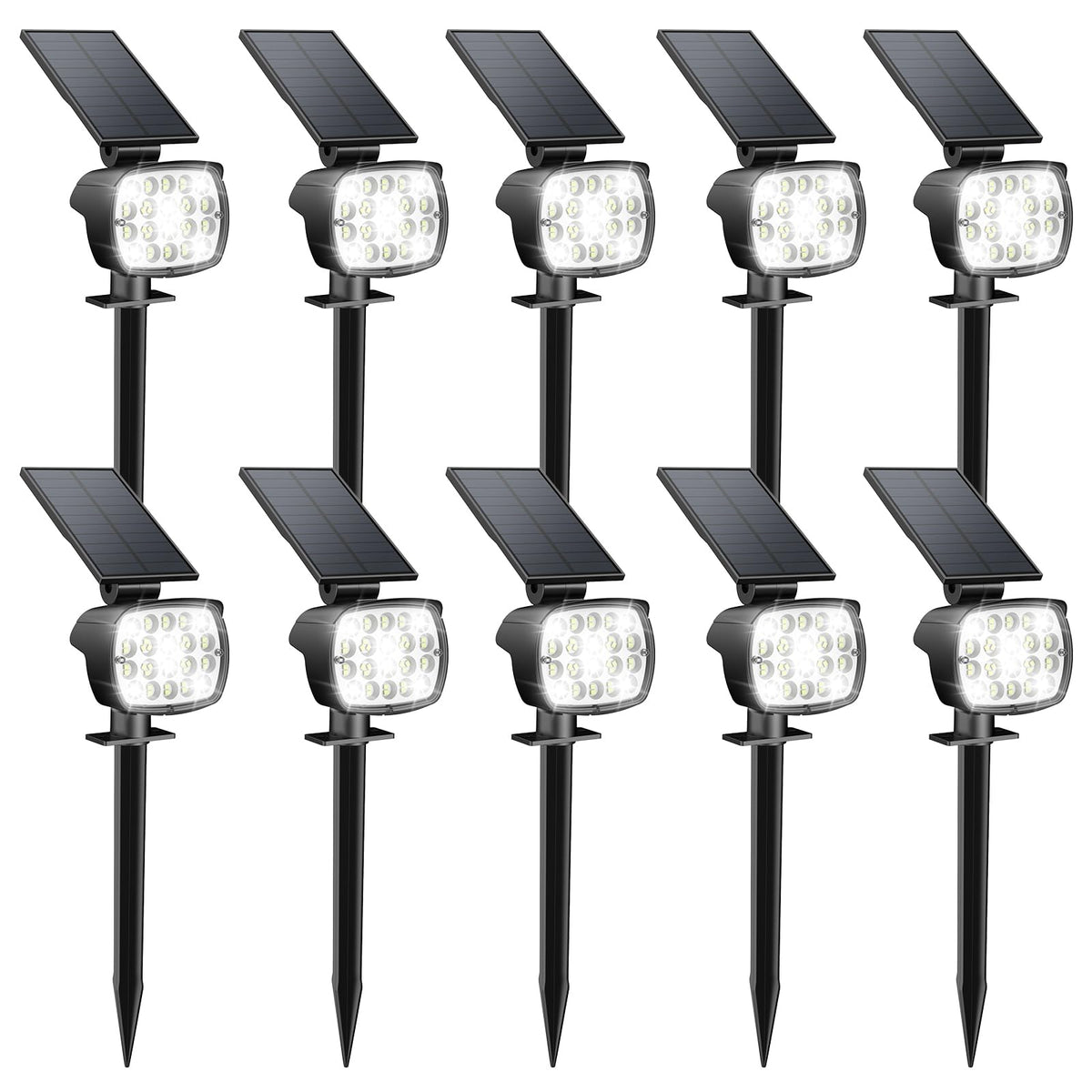 Kaxiida Solar Lights Outdoor - 2025 Upgrade LED Landscape Spotlight, 10 Pack, CoolLight, Model CPD-09, Adjustable Solar Panel