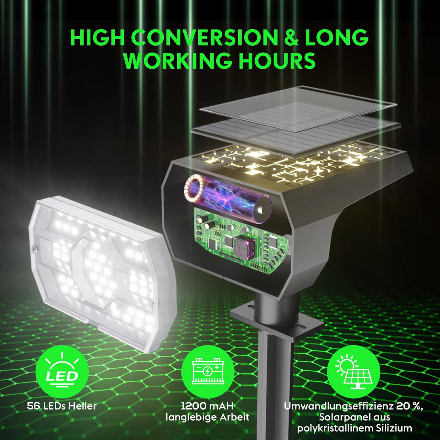 Kaxiida Solar Spot Lights Outdoor Waterproof, 3 Lighting Modes Solar Landscape Lights For Outside, 56Led Solar Powered Lights Du