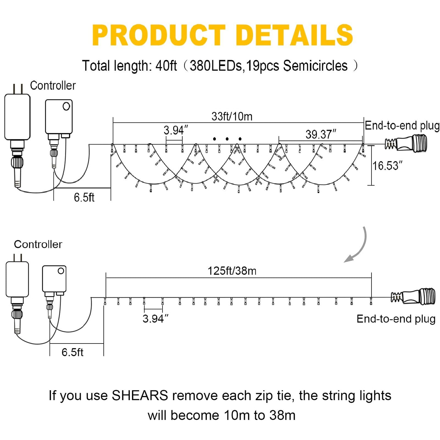 KAZOKU Christmas Lights Outdoor Indoor 40FT 380 LED Waterproof Multicolor Semi-circle String Lights Model YLS380MD01-30