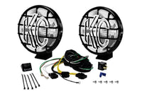 KC HiLiTES 151 Apollo Pro 6" 100w Driving Light System includes two fully assembled lights with integrated stone guards and complete wiring harness with relay and illuminated switch..