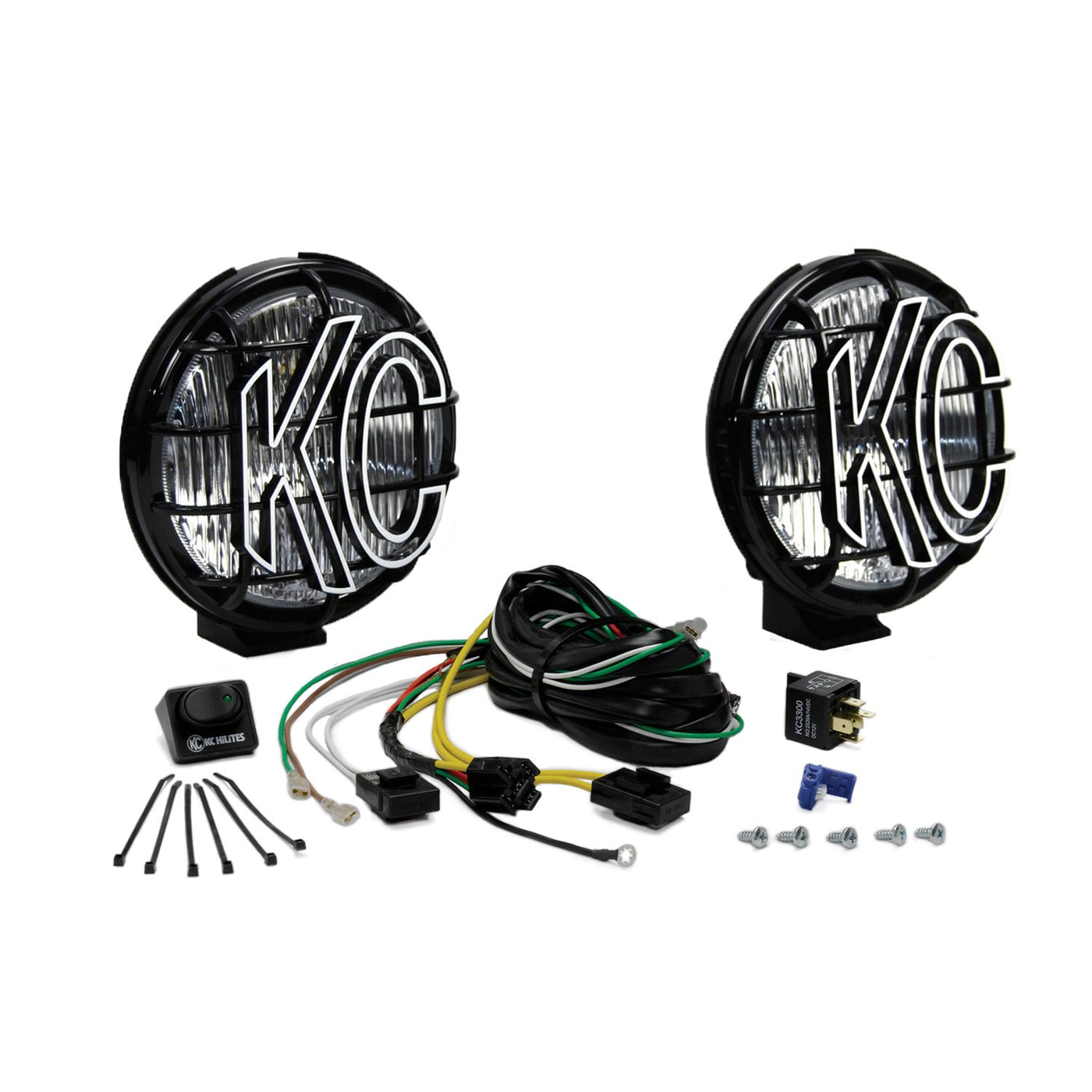 KC HiLiTES 152 Apollo Pro 6" 100w Fog Light System includes two fully assembled lights with integrated stone guards and complete wiring harness with relay and illuminated switch. This lighting system is intended for use in adverse conditions such as Fog..