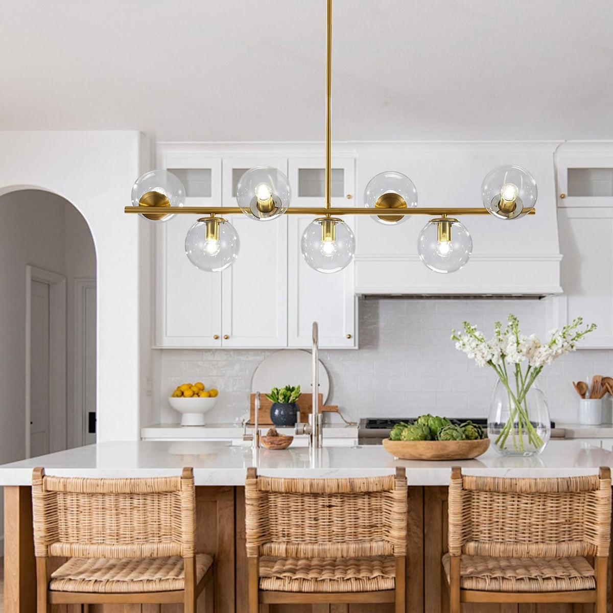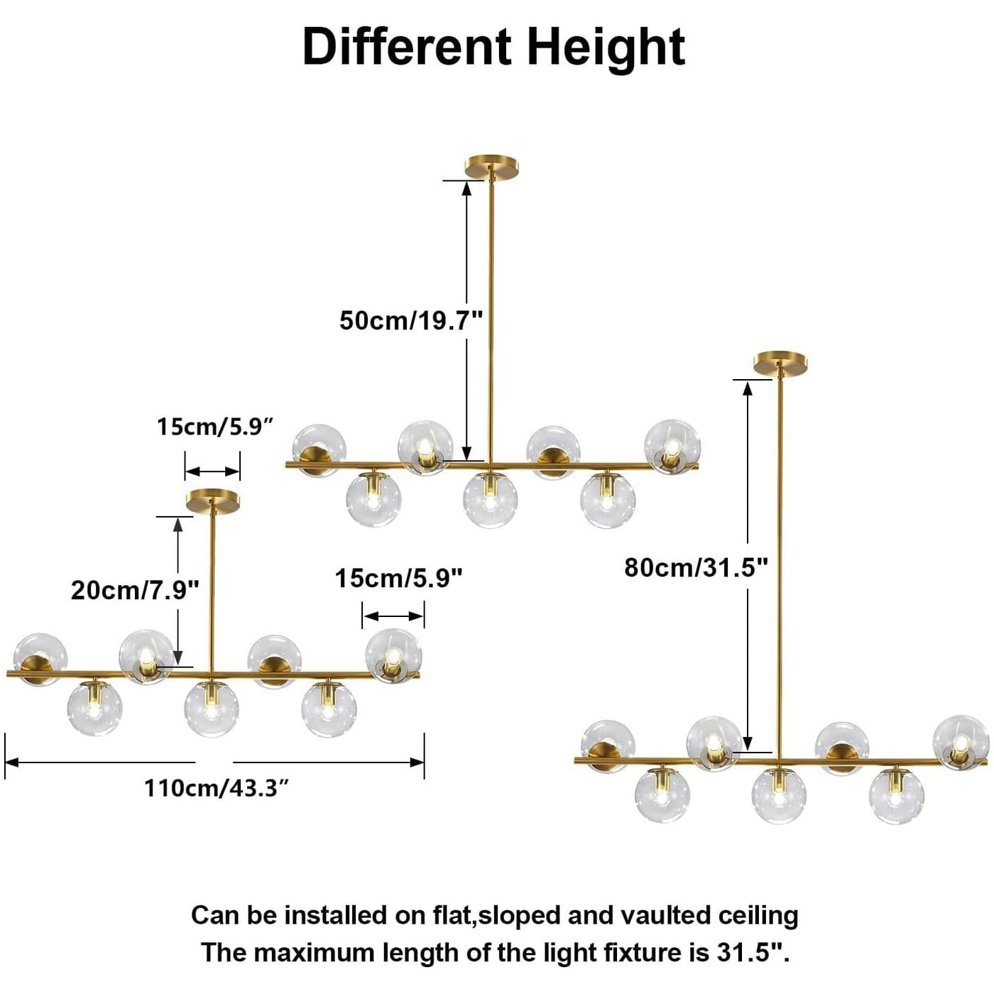 - **Wide Application**: Perfect for a range of settings, the clear glass globes paired with the soft gold finish create a chic look, making it suitable for dining rooms, living areas, and commercial spaces such as cafes and hotels.