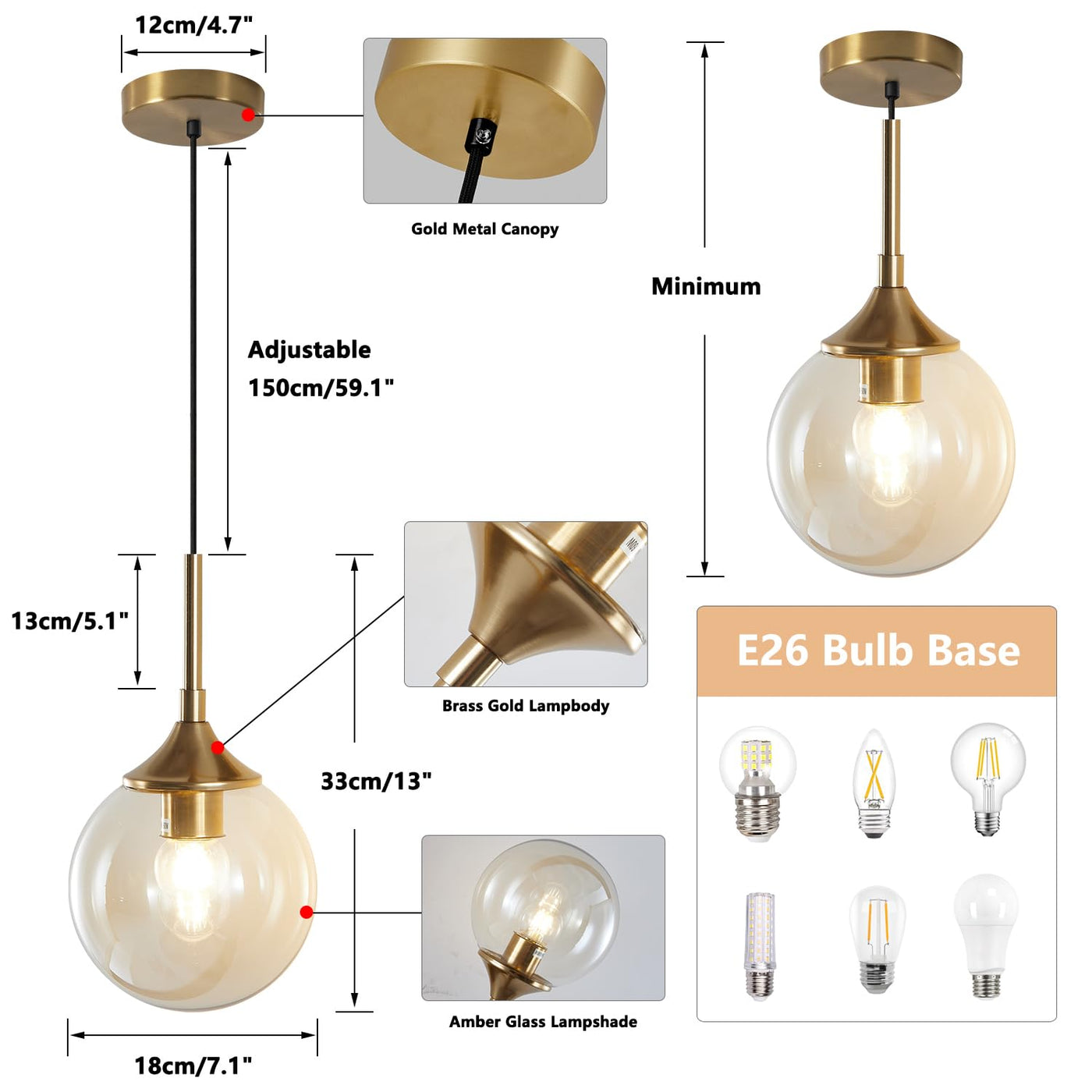 - **Globe Diameter:** 7.1” (18 cm)