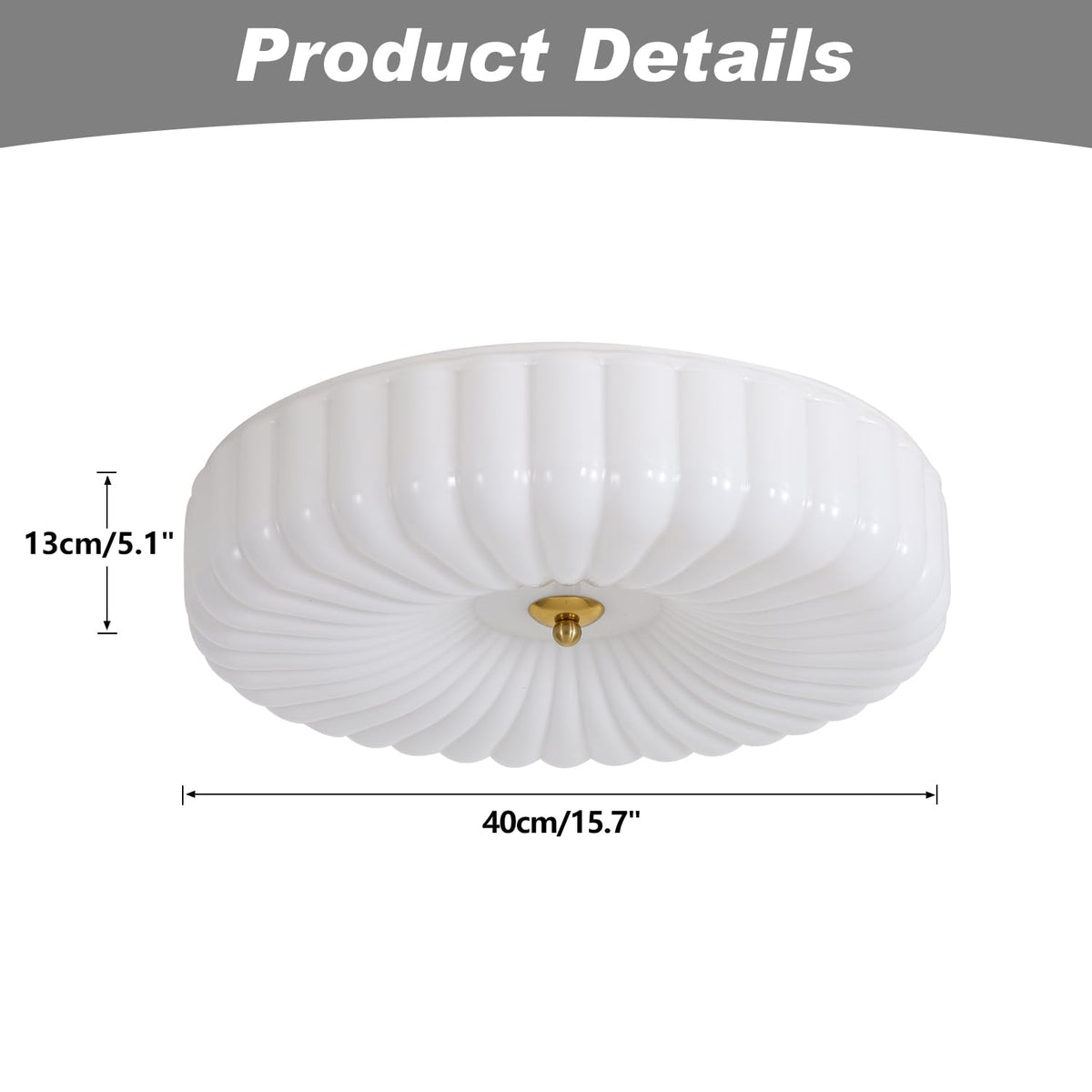 Q: What are the dimensions of the KCO Lighting Flush Mount Ceiling Light?A: The dimensions of the KCO Lighting Flush Mount Ceiling Light are a width of 15.7 inches (40 cm) and a height of 5.1 inches (13 cm), making it a perfect fit for various spaces.
