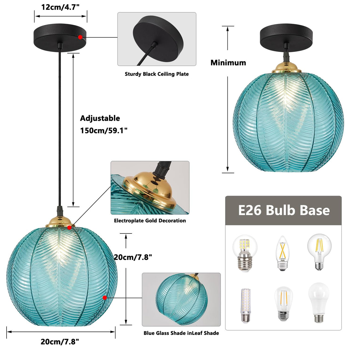 Q: Can the height of the pendant light be adjusted?A: Yes, this pendant light comes with a 59-inch (150cm) adjustable cord, allowing you to customize the height according to your needs. If you require a longer cord, you can request a customization.