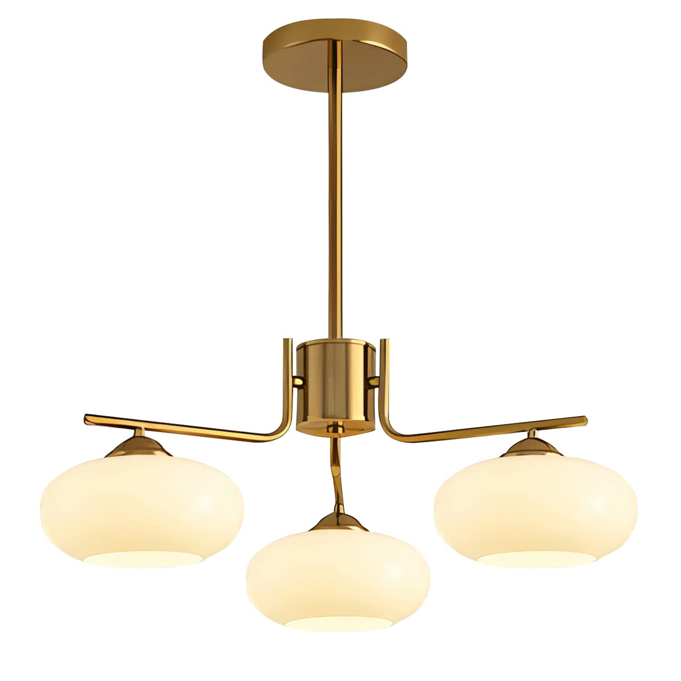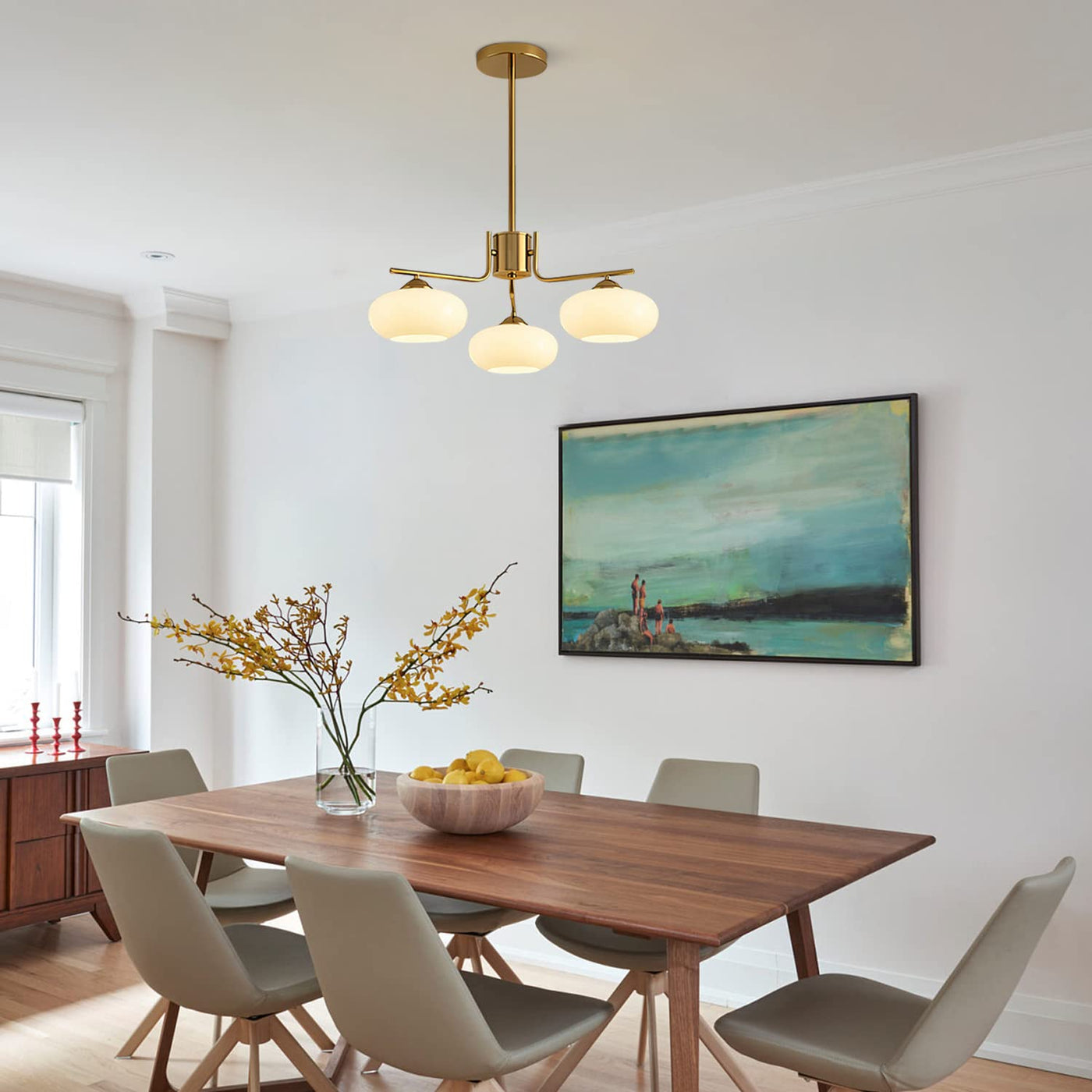 Kco Mid Century Modern Globe Pendant Light - 3-Light Milk Glass Chandelier In Brushed Brass