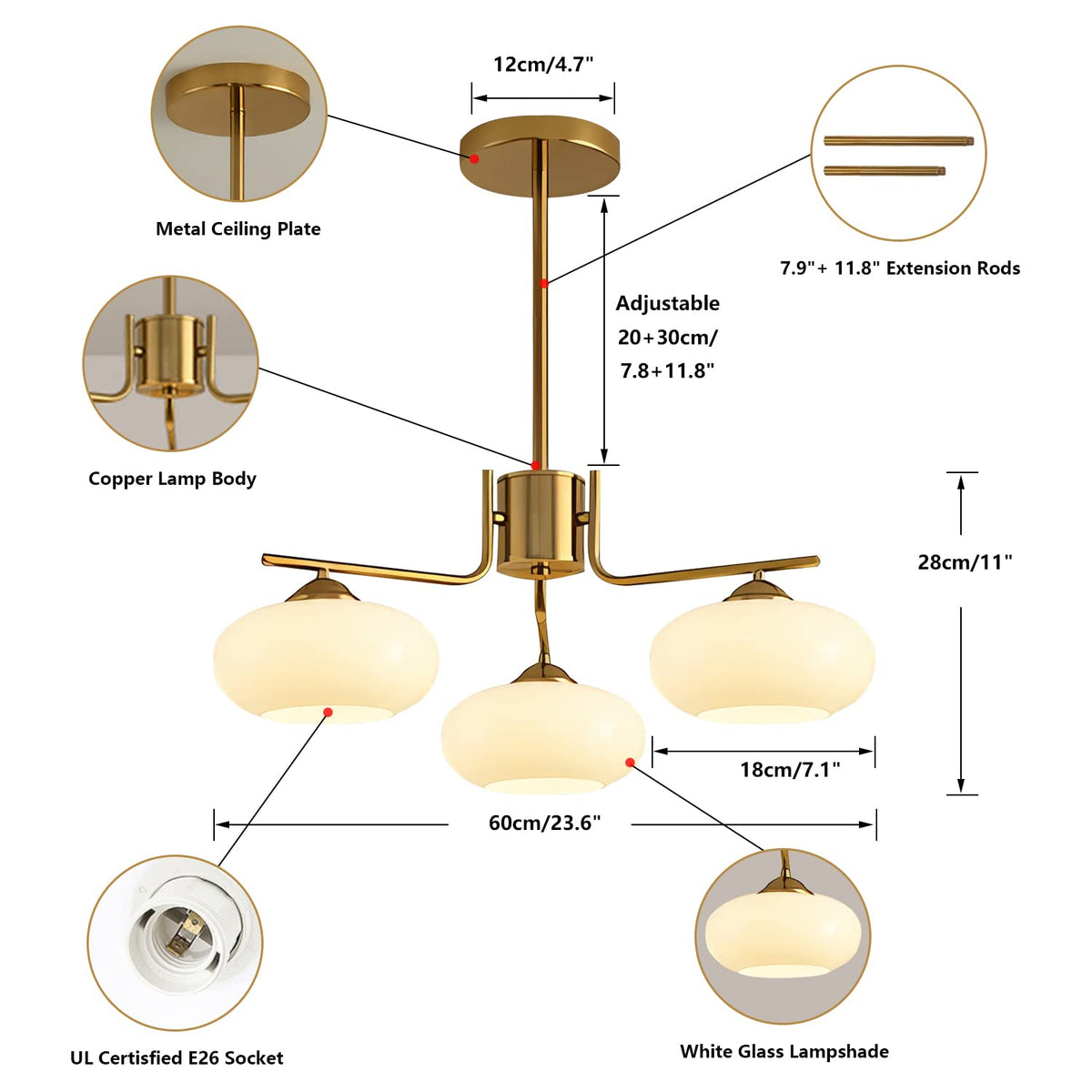 This 3-Light Pendant Light Fixture is not just a source of illumination but a statement piece that elevates your interior design. The combination of gold and white finishes, along with the sleek metal and glass construction, ensures durability and a timeless appeal. Enjoy the soft illumination it provides while enhancing the mid-century character of your space. This fixture is perfect for anyone looking to add a touch of elegance and sophistication to their home or office. With professional after-sales service from KCO, you can buy with confidence knowing that any damaged parts will be promptly addressed. Add this stunning light fixture to your cart today and transform your living space!