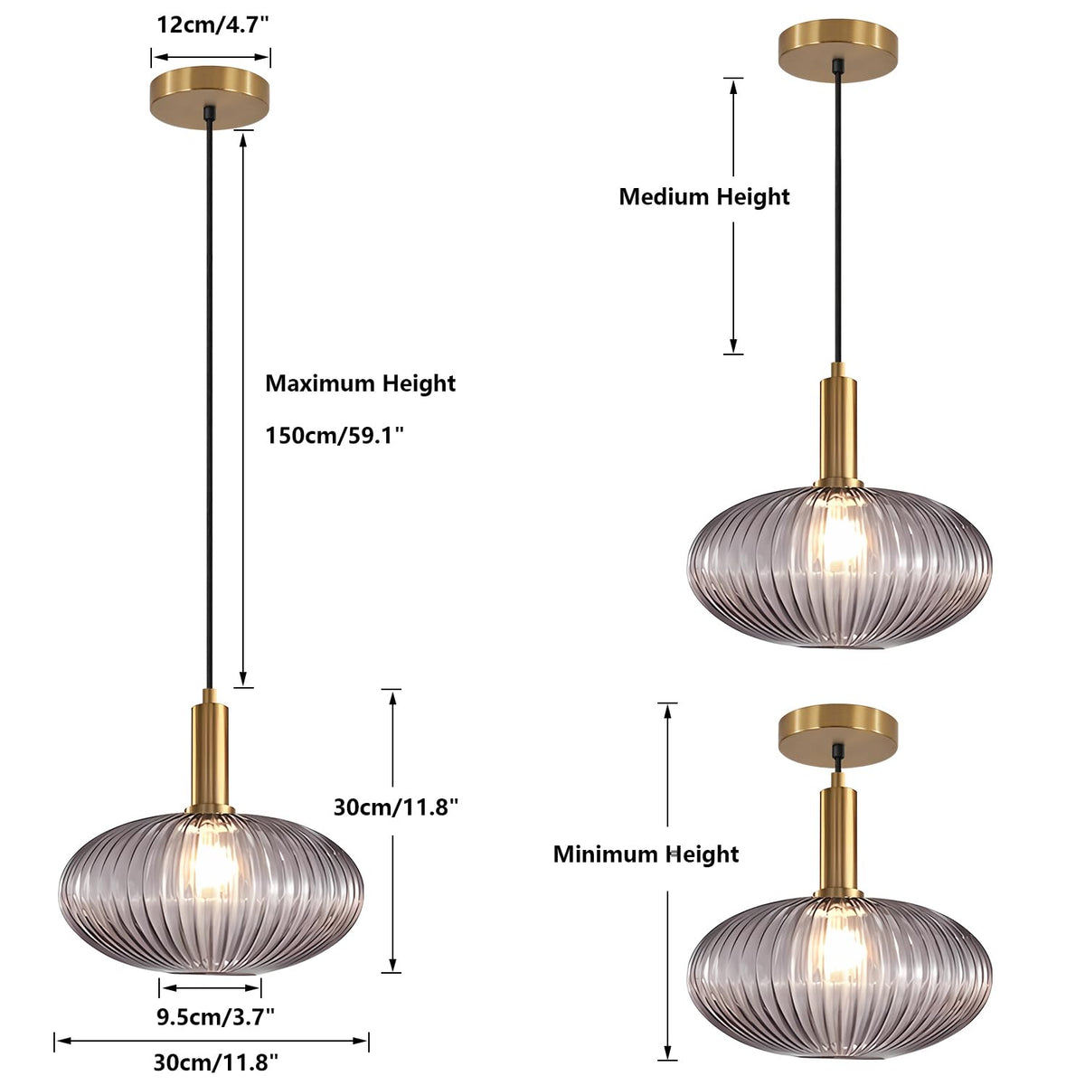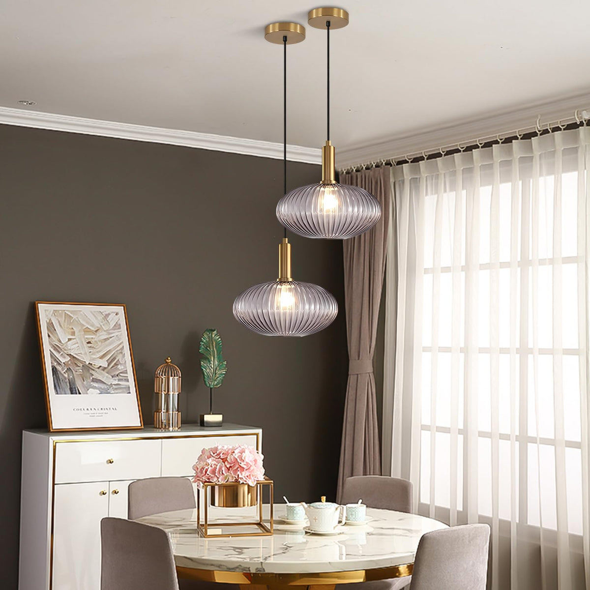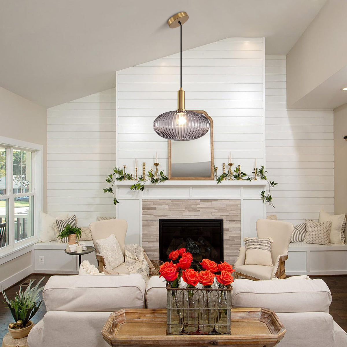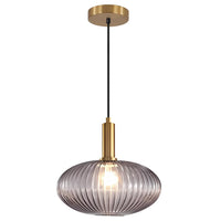 This Smoke Gray pendant light not only serves as a functional lighting solution but also as a captivating decor piece, making it the ideal choice for anyone looking to enhance their living spaces with charm and sophistication. Suitable for both sloped and flat ceilings, this fixture is designed to fit seamlessly into your home or commercial space. Transform your environment and enjoy the perfect blend of style and practicality with the KCO Vintage Ribbed Glass Pendant Light.