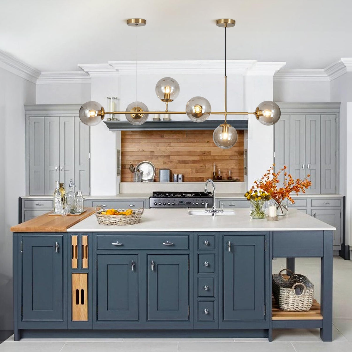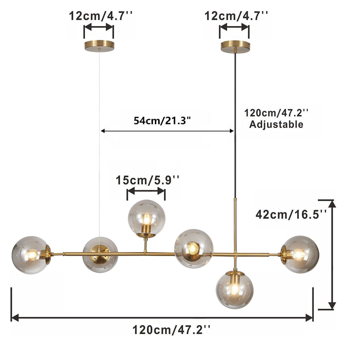 Versatile Dimensions: With a length of 47.2 inches (120 cm) and globe diameter of 5.9 inches (15 cm), this chandelier fits perfectly over kitchen islands, dining tables, and entryways.
