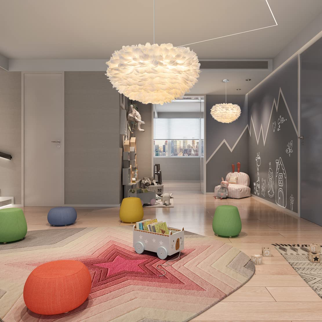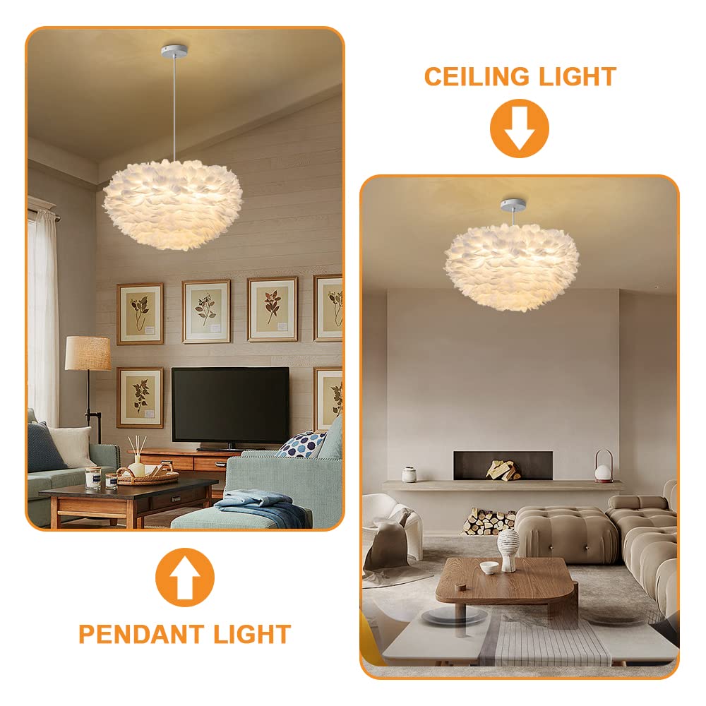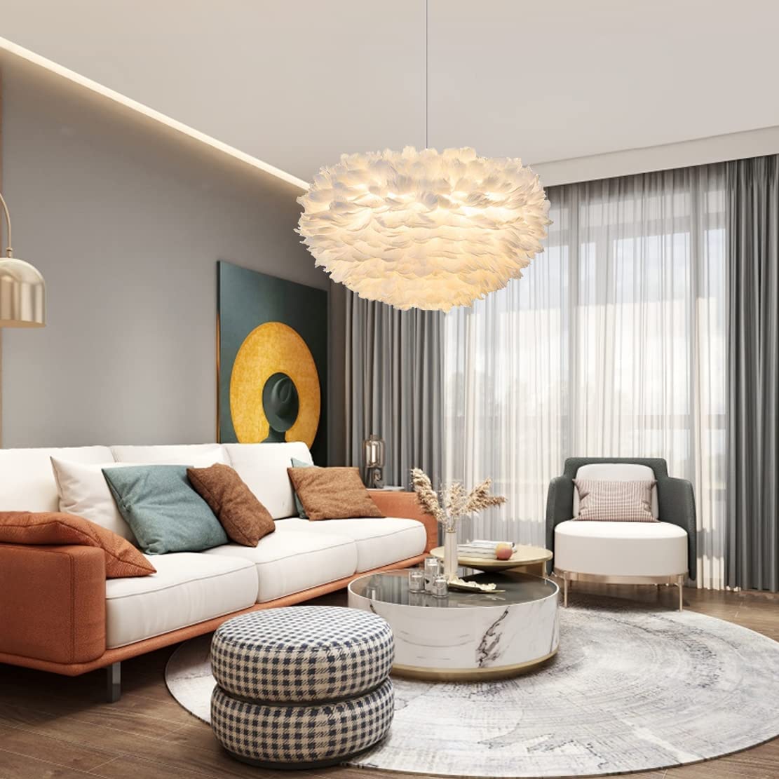 - **Beautiful Feather Shade**: Crafted from high-quality feathers and metal, this pendant lamp features a beautifully fluffed shade that diffuses light in a way that creates a luxurious ambiance, making it an eye-catching centerpiece in any room.