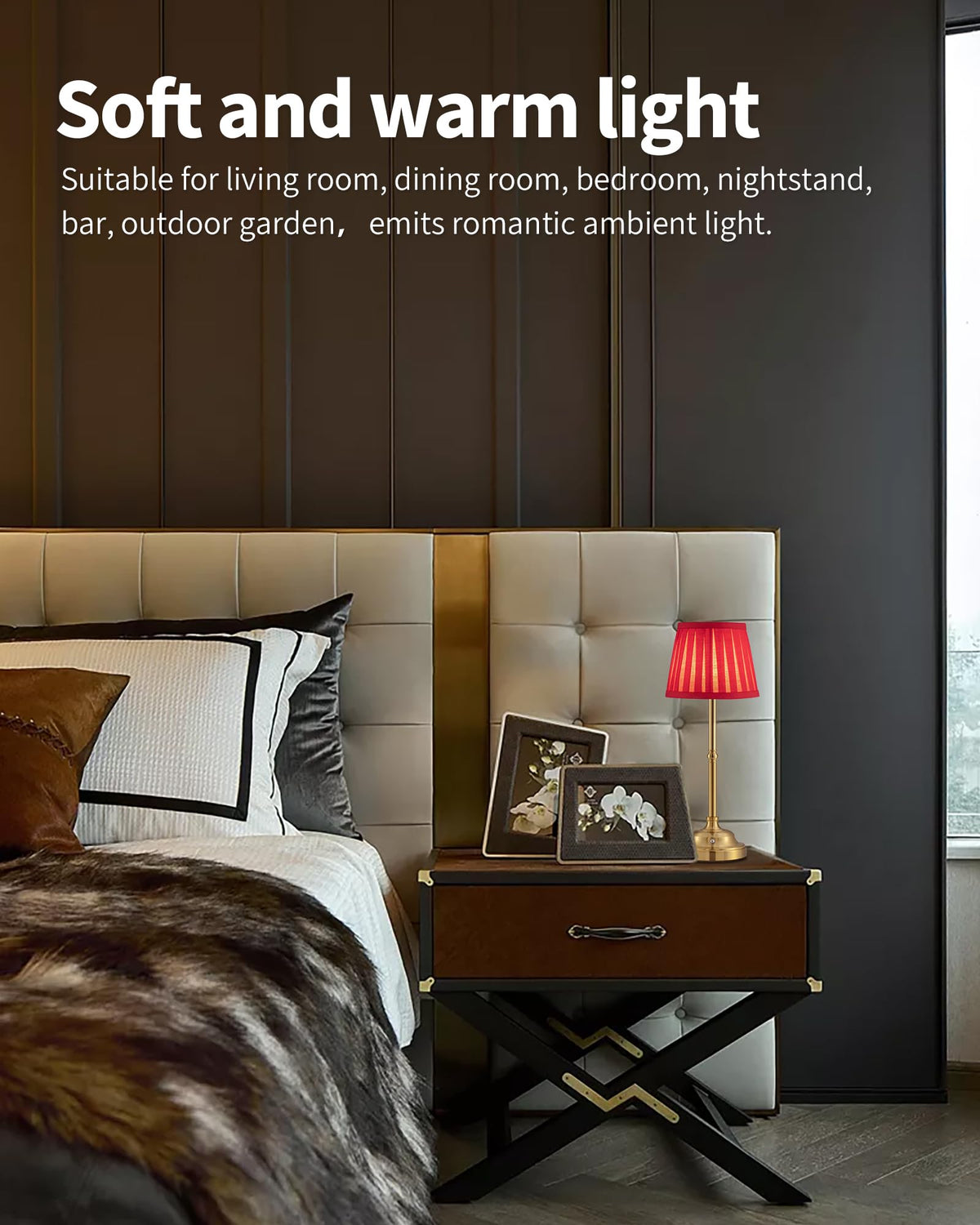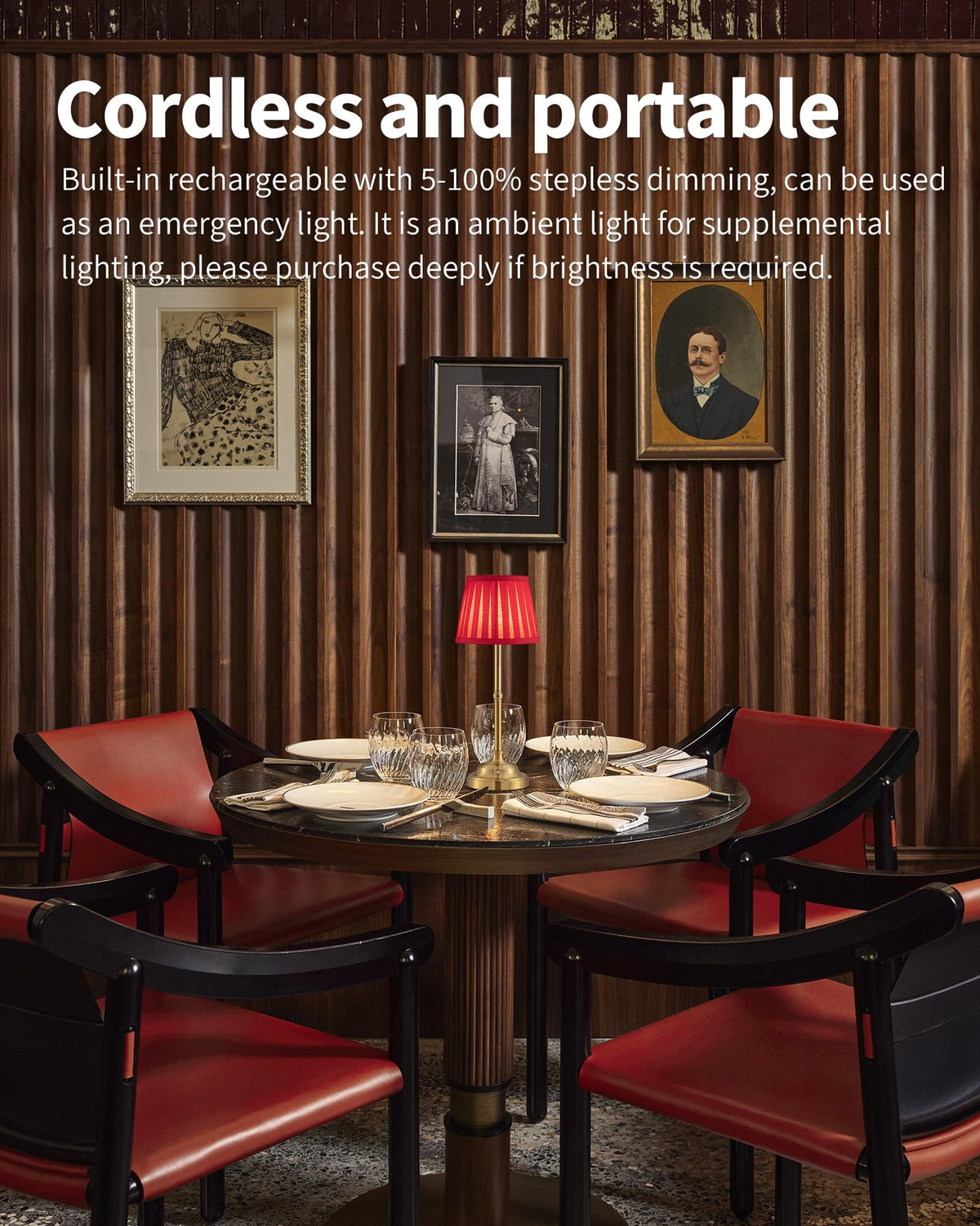 Kdg Cordless Led Table Lamp Set Of 2, Portables Fabric Shade Desk Lamps, 5000Mah Rechargeable Battery Powered Lighting, Dimmable Light For Dining Room, Bedroom, Bedside, Night Light, Balcony (Red)