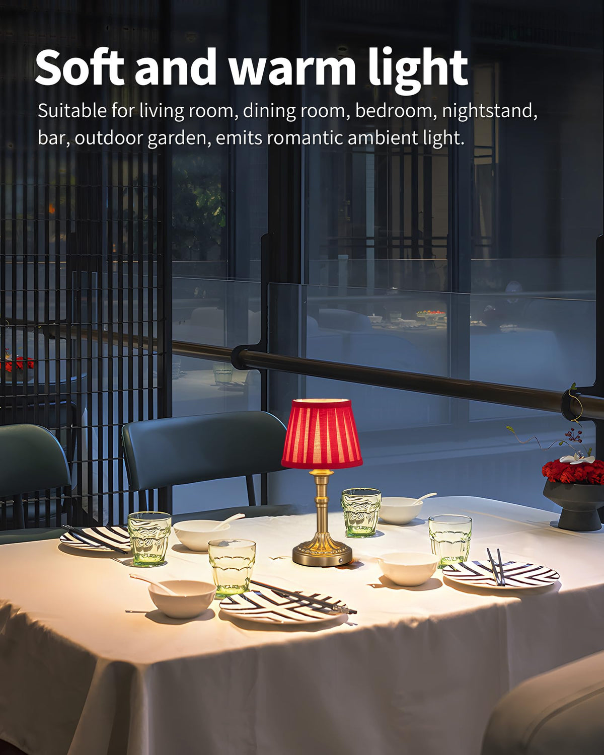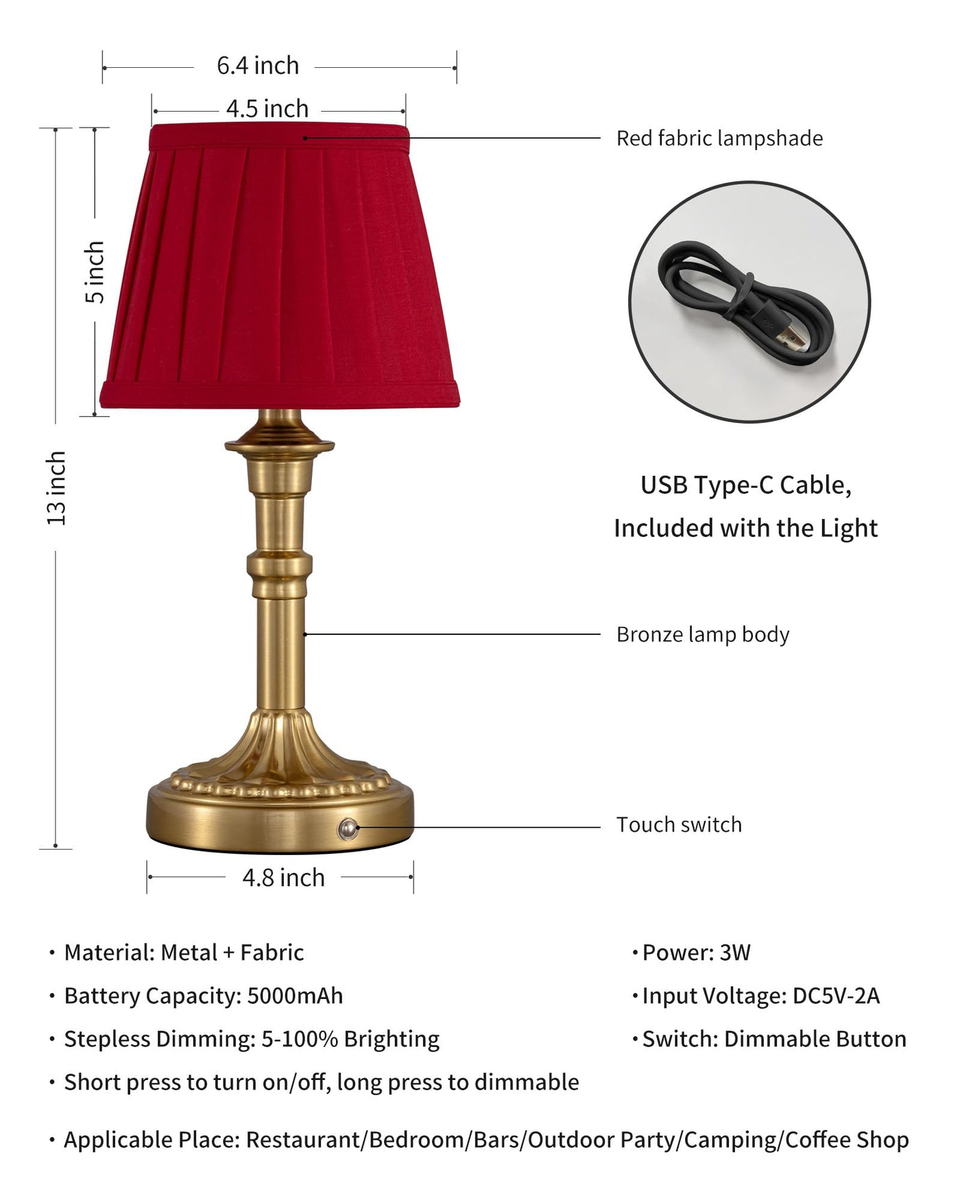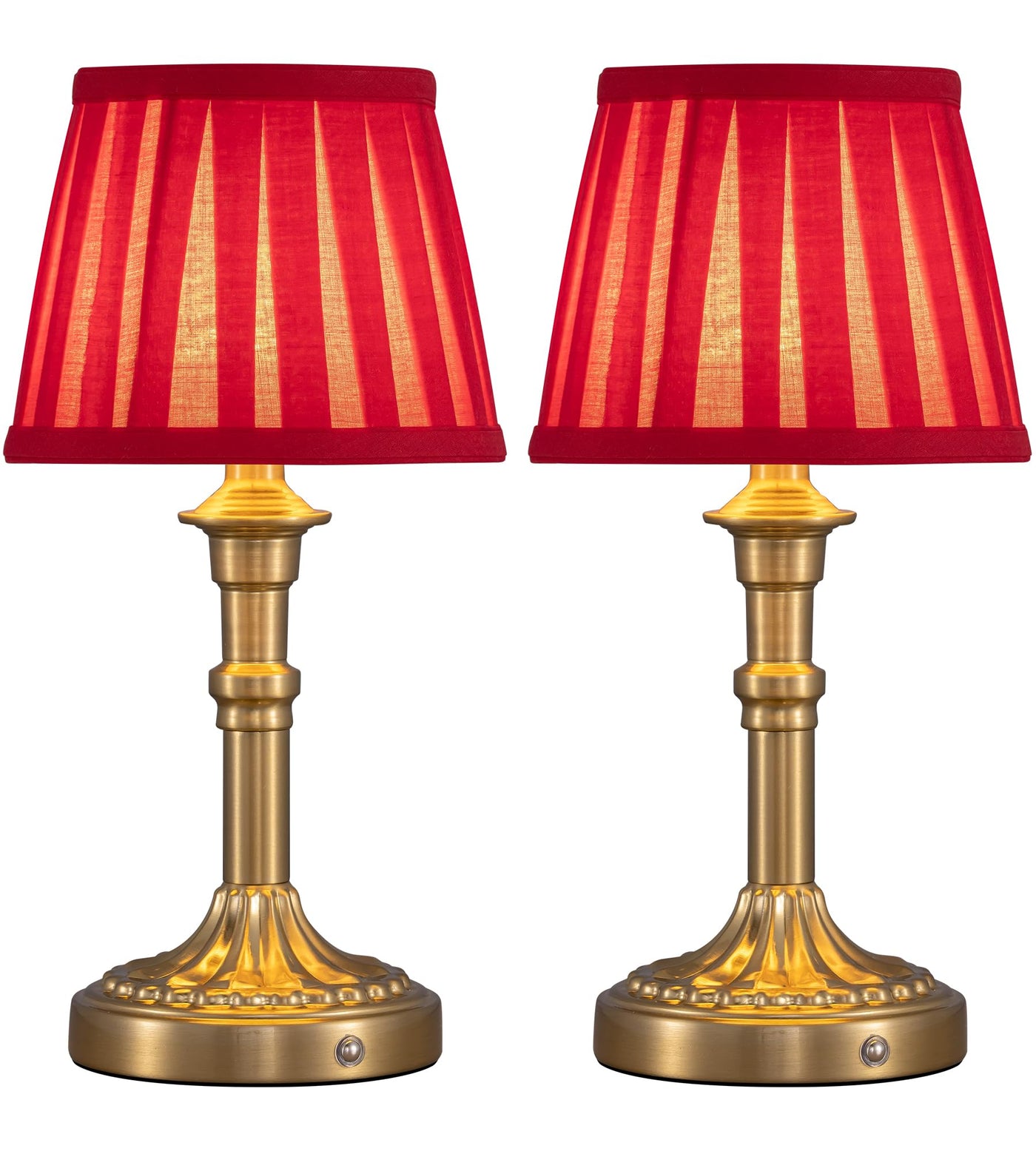 Kdg Cordless Portables Table Lamp Set Of 2, Led Fabric Shade Small Desk Lamps, 5000Mah Battery Powered Lighting, 2700K Stepless Dimmable Light For Living Room, Dining Room, Bedroom (Bronze+Red)