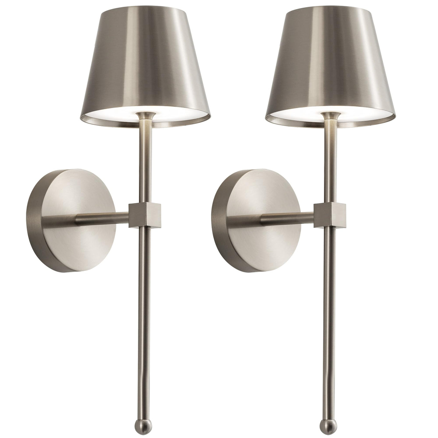 KDG Cordless Wall Sconces Set of 2, LED Battery Lamps, Brushed Nickel, (Small) L4.5 × H13 × D6.5 inch, Model AMZ