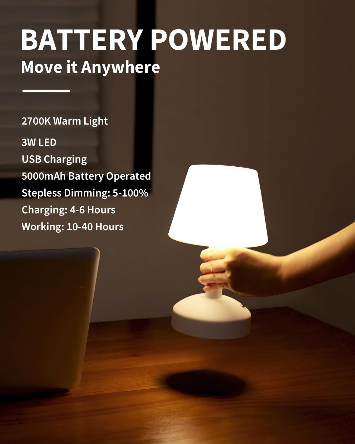 KDG LED Cordless Portable Table Lamp, Rechargeable Battery Powered Table Lamp, Infinite Dimming, Touch Switch, Simple Appearance, Stylish Design. Used for reading, shower lamp, waterproof lamp, bedside work, study, living room, kitchen, childrens room, etc., create a romantic lighting atmosphere in every space, home decor.