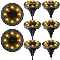 KDORRKU Solar Powered Ground Lights 8 Pack, IP68 Waterproof LED Disk Lights for Garden, Black Pathway & Deck Lighting, Warm White