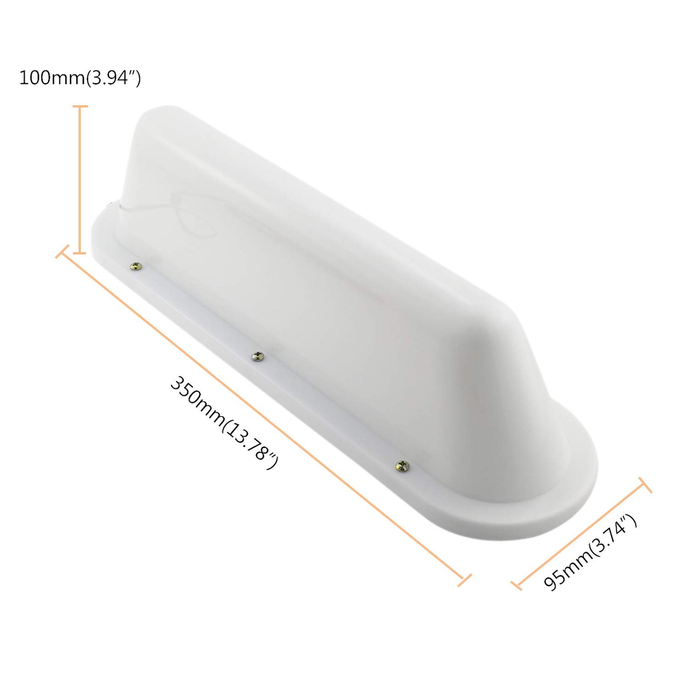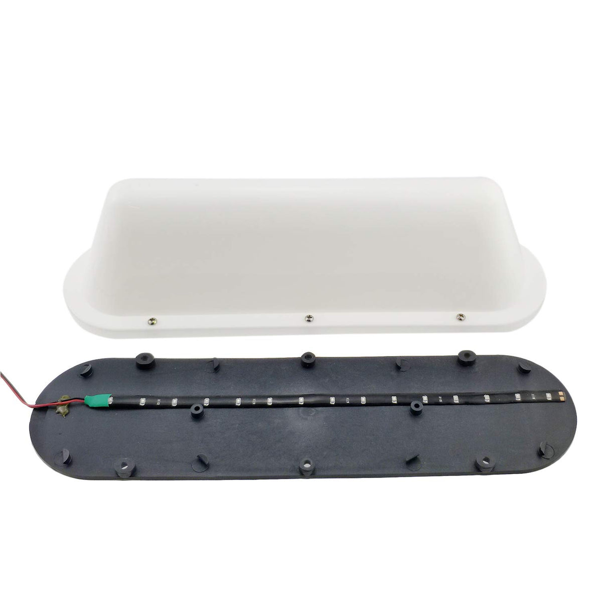 12V Waterproof Sun-proof Anti-dust Magnetic Base Roof Top Cab LED Sign Light With Cigarette Lighter Description Material: High quality PP Magnetic base (Easy attach on the roof) Color: White shell with Green LED TAPE LED Light Color: GREEN Quantity: 1 pc Voltage: DC 12V Rated Power: 10W Size: approx.350 x 95 x 100mm / 13.78''x3.94''x3.74''(LxWxH) Cable length (approx.): 3m(118'') Features: 1.Adopt big and stable chip. 2.This energy-saving LED tape features low power consumption, long service life, anti-dust. 3.No delay in lighting, much safer, prevent the rear-end collision danger. 4.Designed with flexible and durable strip. 5.NO Letter design, you can design the word or pattern you want. 6.Waterproof & sun-proof design. 7.Easy installation, just attach the light on the roof & plug the cigarette lighter. Fitment: Fit all kind of vehicle with 12V working voltage. Please Read All Description Before Ordering the Product. Instructions Not Included. Package includes: 1 x LED Taxi Cab Roof Light