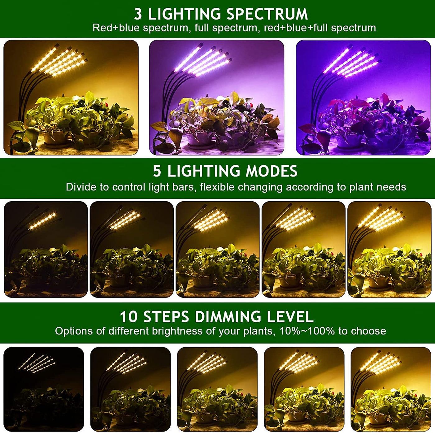 - **10-Level Brightness Adjustment**: With 10 dimmable brightness levels, you can easily tailor the light intensity to suit your plants' specific needs, promoting faster growth and vibrant health. Whether for delicate seedlings or robust plants, this grow light adapts to support diverse growth requirements.