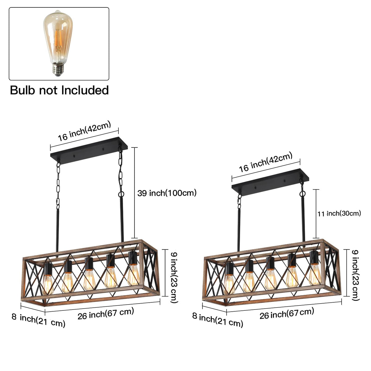 Keesfu 5-Light Dining Room Light Fixture, Farmhouse Kitchen Island Lighting,Adjustable Height Pendant Light, Rustic Linear Chandelier For Kitchen, Dining Room Table, Pool Table. (Wood Grain Color)