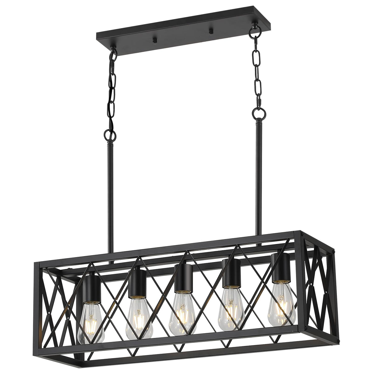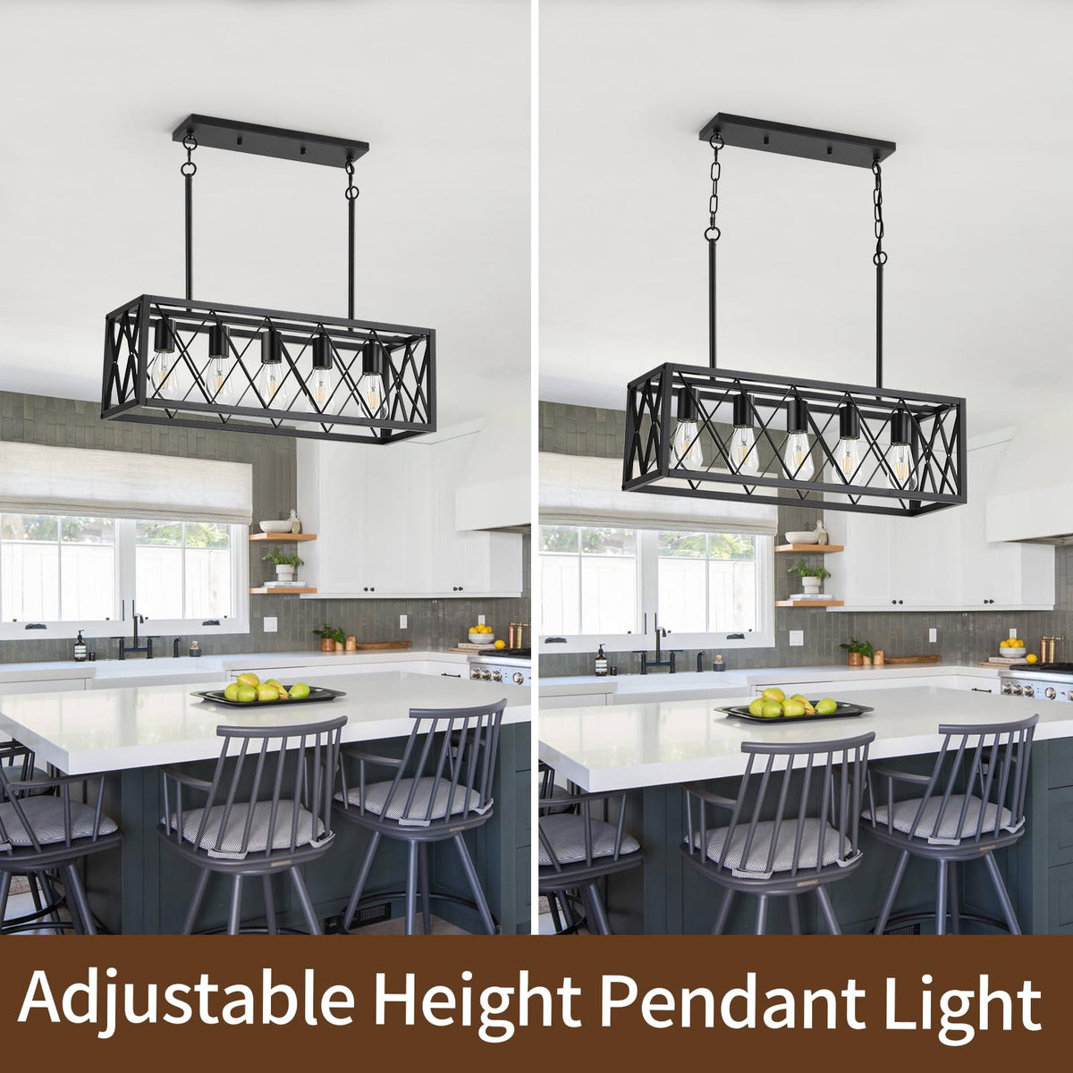 Keesfu Black Farmhouse Kitchen Island Lighting, 5 Lights Pendant Lighting Fixtures, Adjustable Height, Industrial Dining Room Light For Living Room Foyer Dining Table Over Sink.