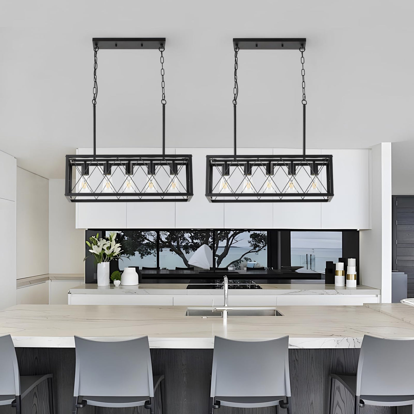 Q: What materials are used in the construction of this lighting fixture?A: The KEESFU Black Farmhouse Kitchen Island Lighting is crafted from durable metal, ensuring long-lasting quality, while the timeless black finish adds an elegant industrial touch to your home decor.