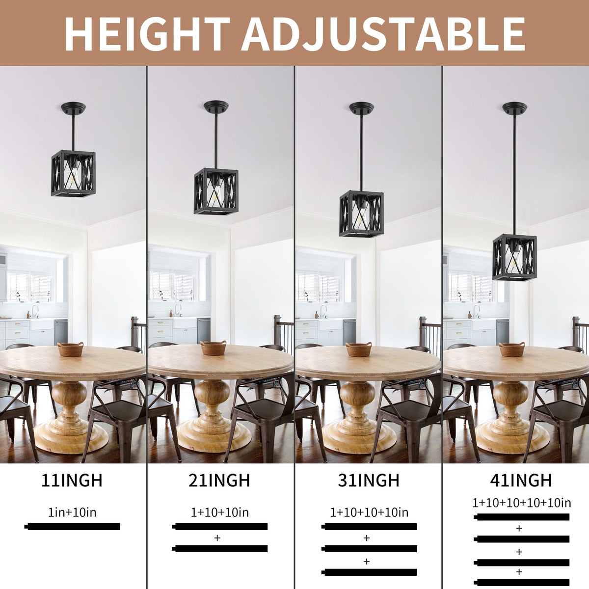 Keesfu Farmhouse Kitchen Light Fixtures, 2 Lights Small Pendant Lighting Fixtures, Adjustable Height, Industrial Dining Room Lig