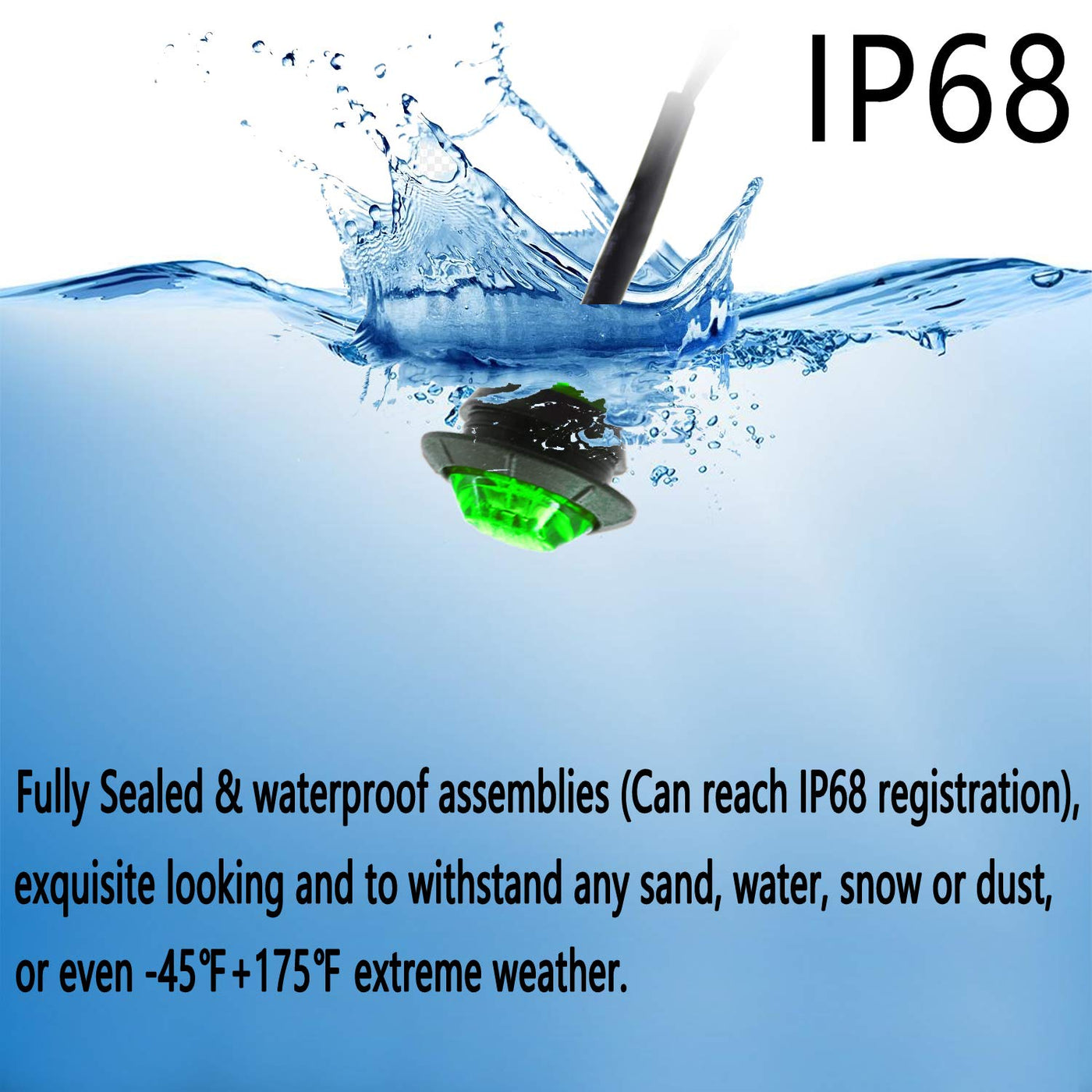 Specification: - Light Source: LED Chips - LED Quantity: 3pcs LED Chip - Operating Voltage: 12V - Output power: 1.5W/each bulb - Luminous flux: 75LM/each bulb - Light Color: Green - Waterproof: IP68 - Body Material: PC Lens & Rubber Grommet Long LED Lifespan: 100,000 Hours - Working Temperature: -45?+175?