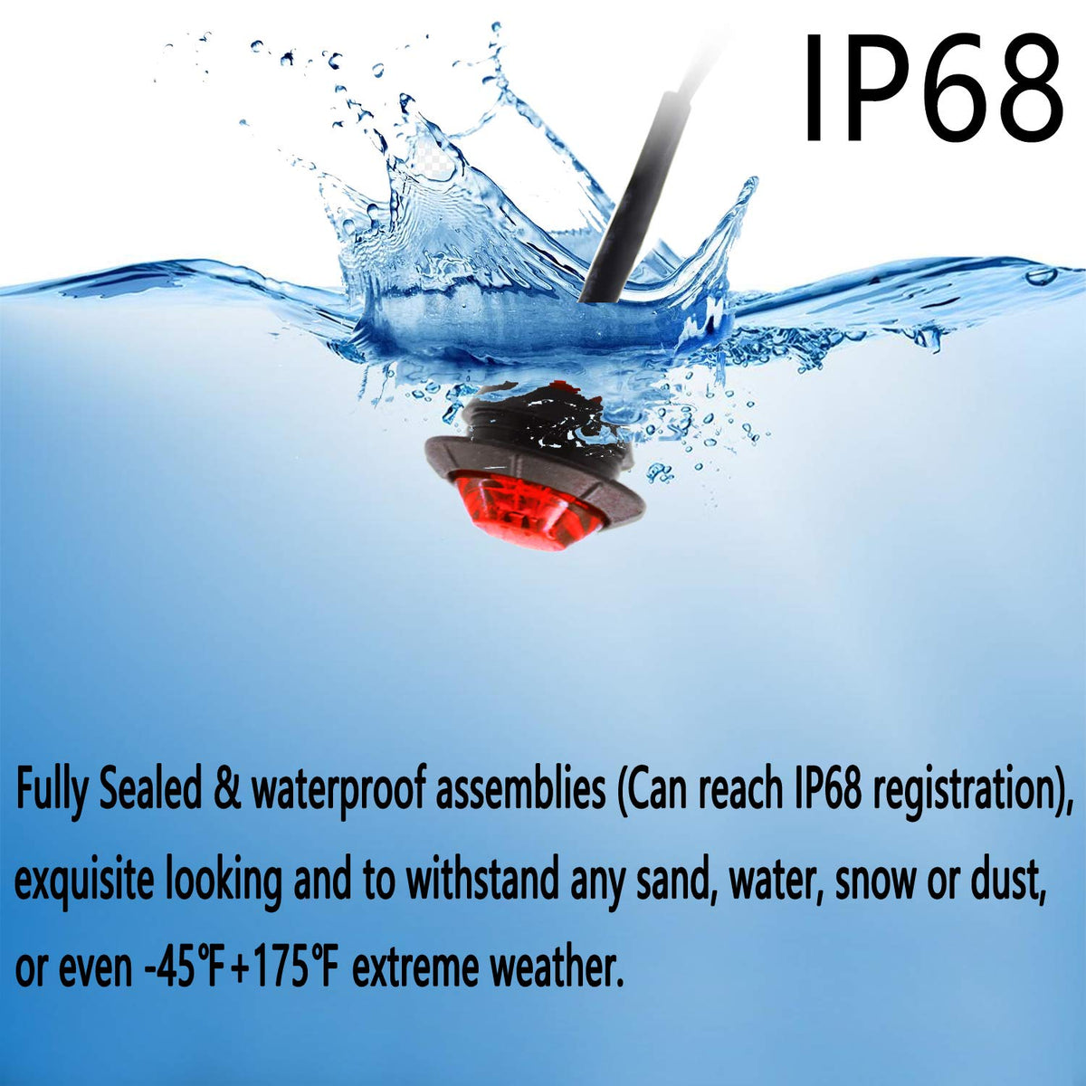 KEING LED Marker Lights, 3/4 Inch Waterproof, 10 Amber + 10 Red + 10 White, 12V for Trailer, Truck, Bus, Van, ATV, RV,