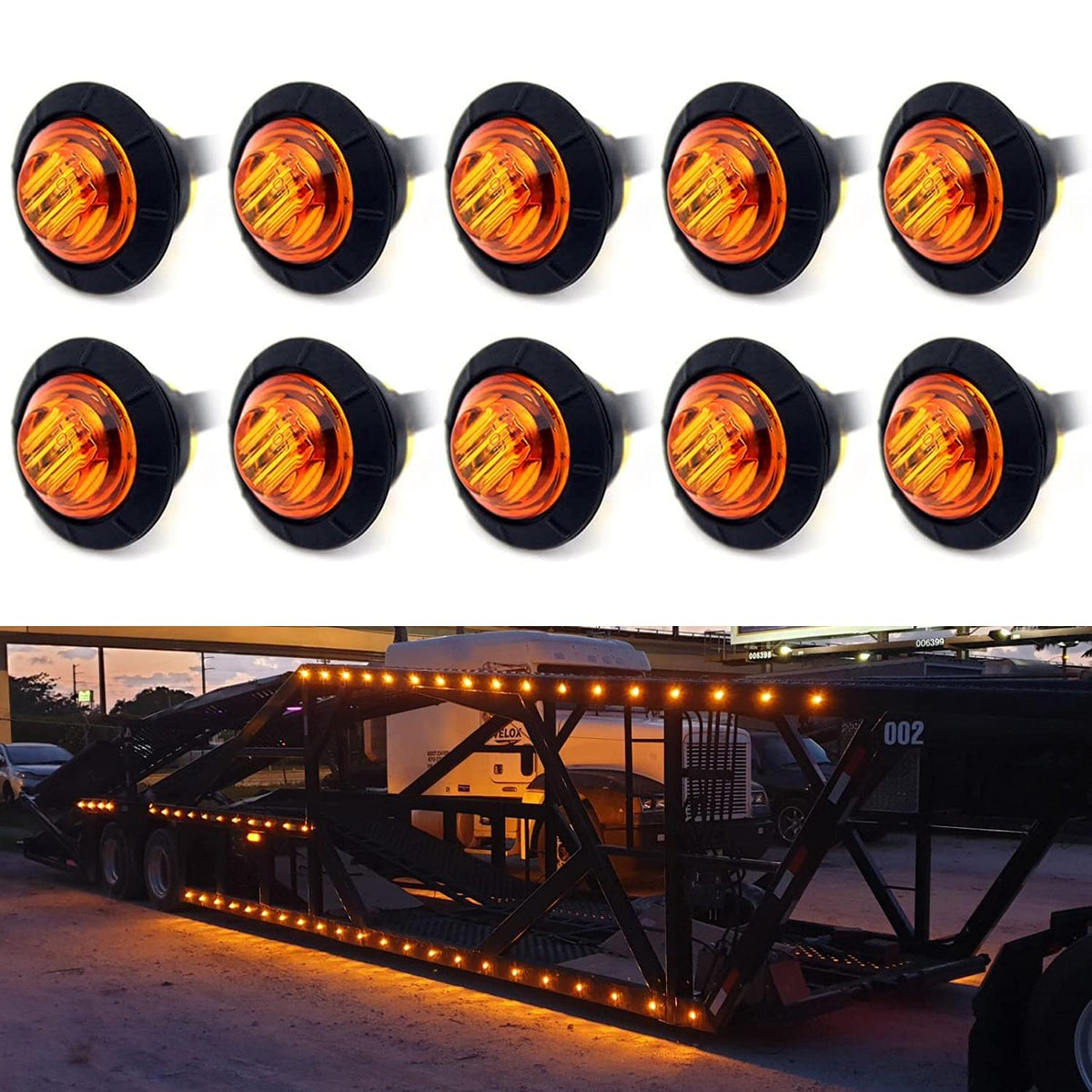 These marker lights are easy to install, with a compact size of 19.1mm (3/4 inch) for the lights and a rubber grommet size of 27.9mm (1.1 inch). Each light comes with a wire length of 230mm (9.0 inches), providing flexibility during installation. The product package includes 10 Amber LED marker lights, making it an economical choice for both individual and fleet needs.