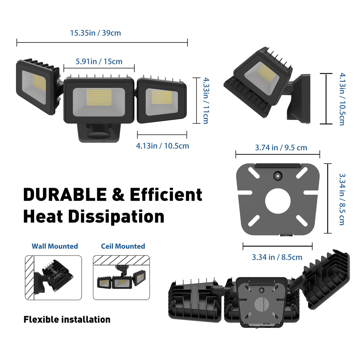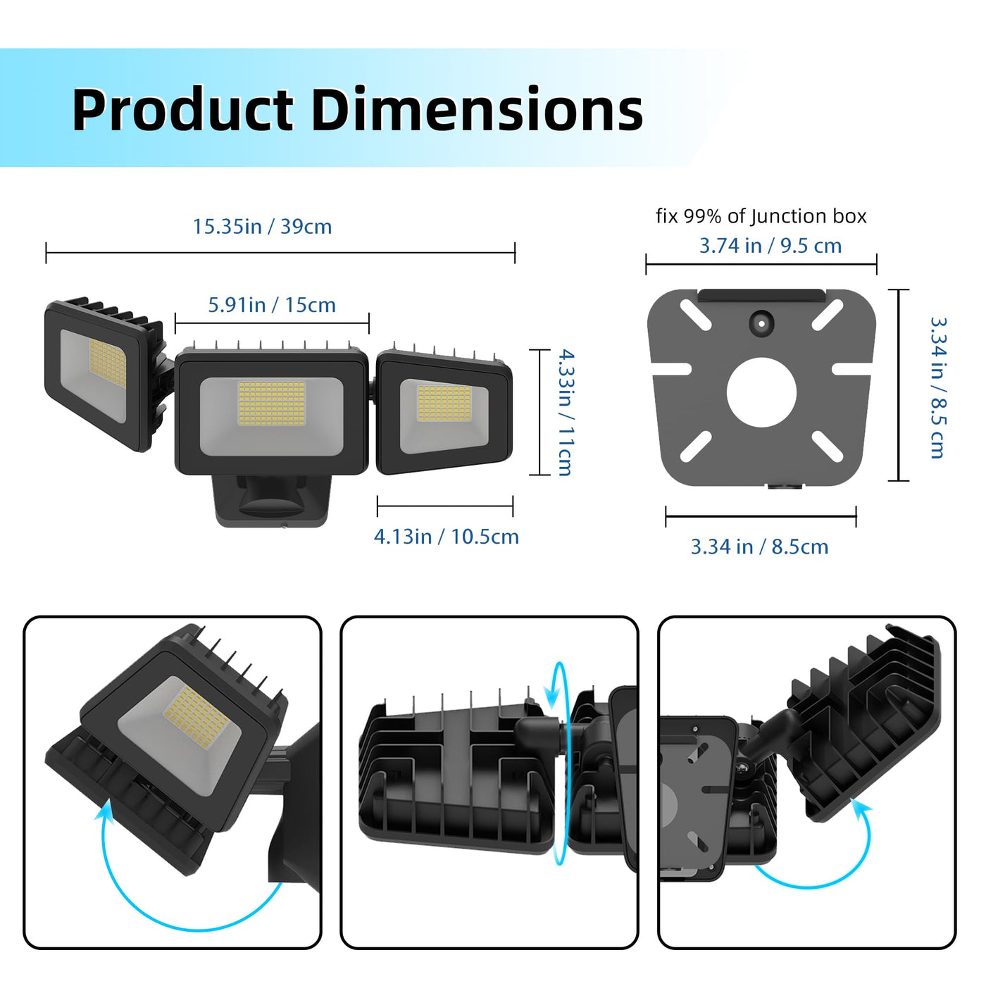 - **Versatile 3 Heads Design**: The innovative three-head design allows you to easily adjust the angle of each light head according to your specific lighting needs, providing flexibility for various outdoor applications.