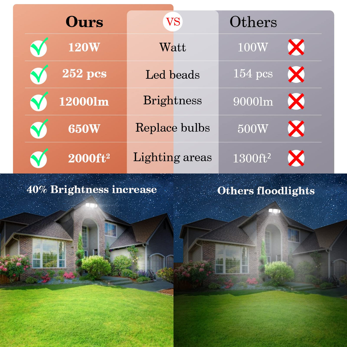Kelinvmi 120W Led Flood Light - 12000Lm Waterproof Security Light, Warm White 4500K, Black