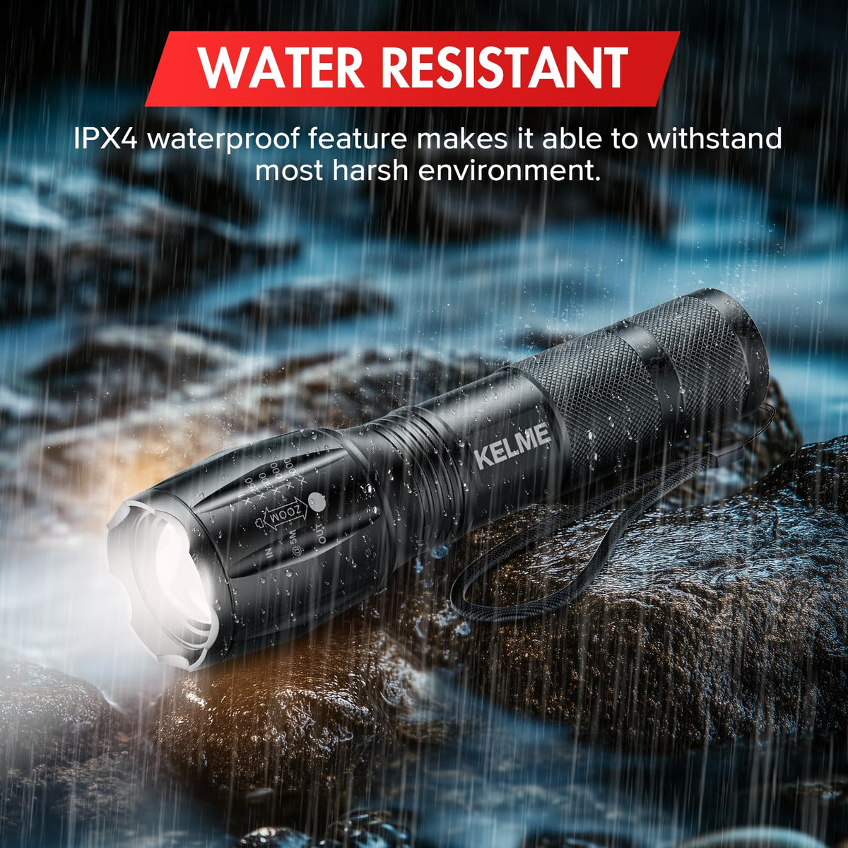 Bright Flashlights High Lumens: Illuminate your adventure with high lumen up to 1500 lumens(Max), designed to deliver powerful bright lighting effect. High performance KELME flashlight features bright LED light beads, 10 times brighter than regular led flashlights. 3 Pack flashlight set coming with 9 AAA batteriesis perfectly suited for your home outdoor adventures and camping! Light up your world with the KELME flashlight - bright, reliable, and ready for any adventure! Zoomable & Five Modes: Our flashlight features an adjustable focus that you can easily between a wide-area floodlight and a focused spotlight. Meets your needs for a wide-area or close-up tasks. Additionally, it offers five switchable modes, including High, Medium, Low, Strobe, and SOS. Whether for daily use or emergency situations, this flashlight is designed to provide convenience in any circumstance.