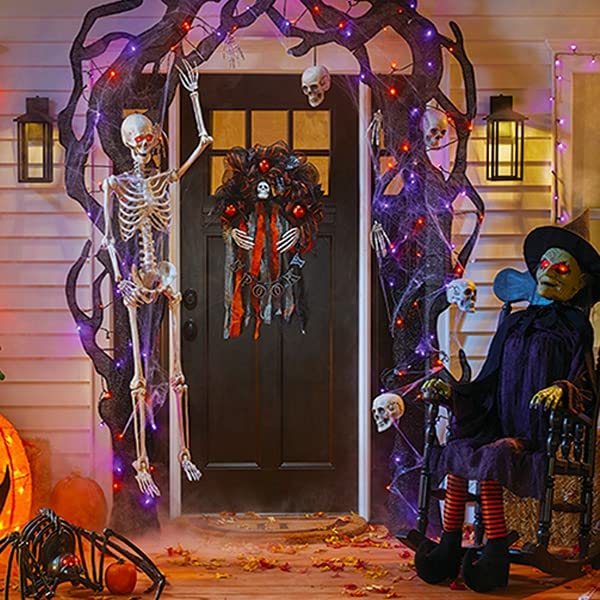 Q: How long are the kemooie Halloween solar string lights?A: The kemooie Halloween solar string lights come in a length of 78 feet, featuring 240 LED lights in vibrant orange and purple colors, perfect for decorating large areas like gardens and patios.