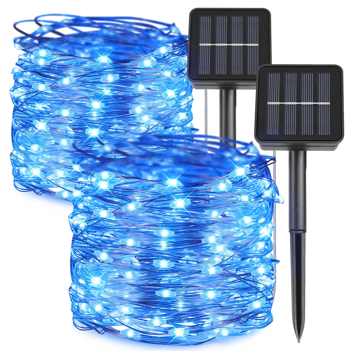 Kemooie 2 Packs Solar String Lights, 100 Led 33Ft 8 Twinkle Modes Blue Solar Powered Fairy Lights, Waterproof For Outdoor, Tree,