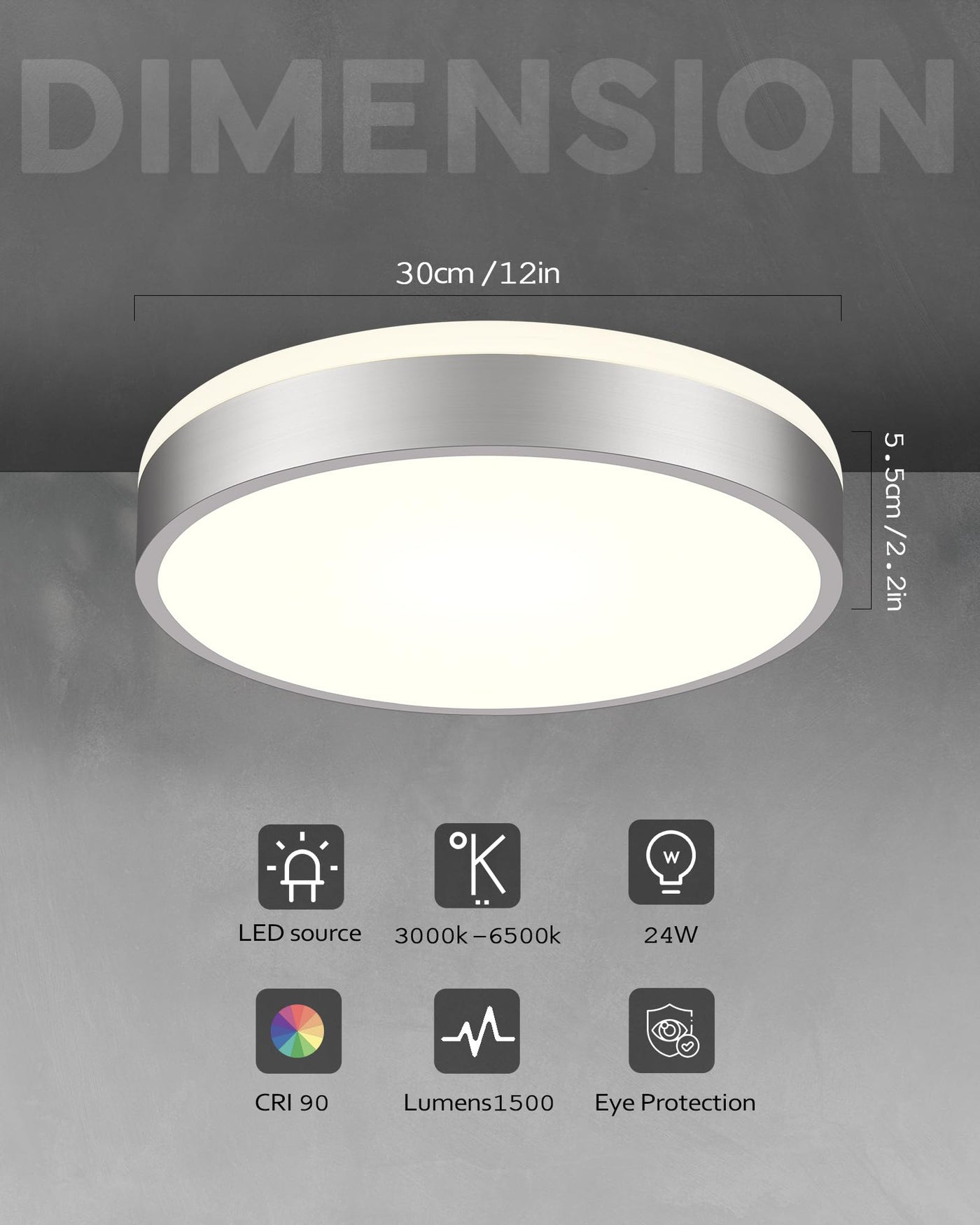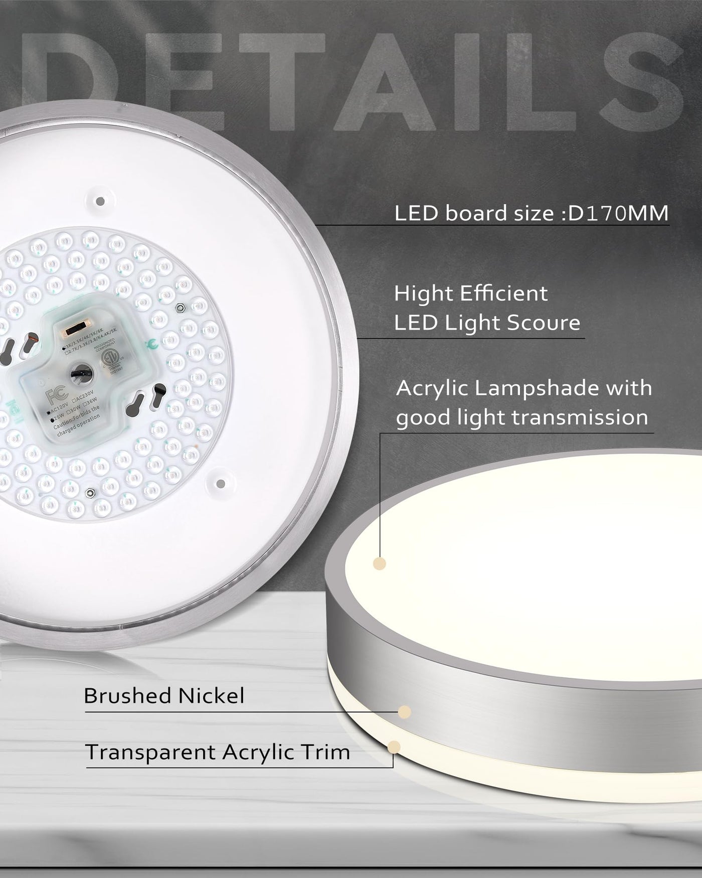 Ken & Ricky Modern Flush Mount Led Ceiling Light Fixture 12 Inch 5Cct Ceiling Light Brushed Nickel Hallway Lighting Fixtures Ceiling Kr3350-1Pk