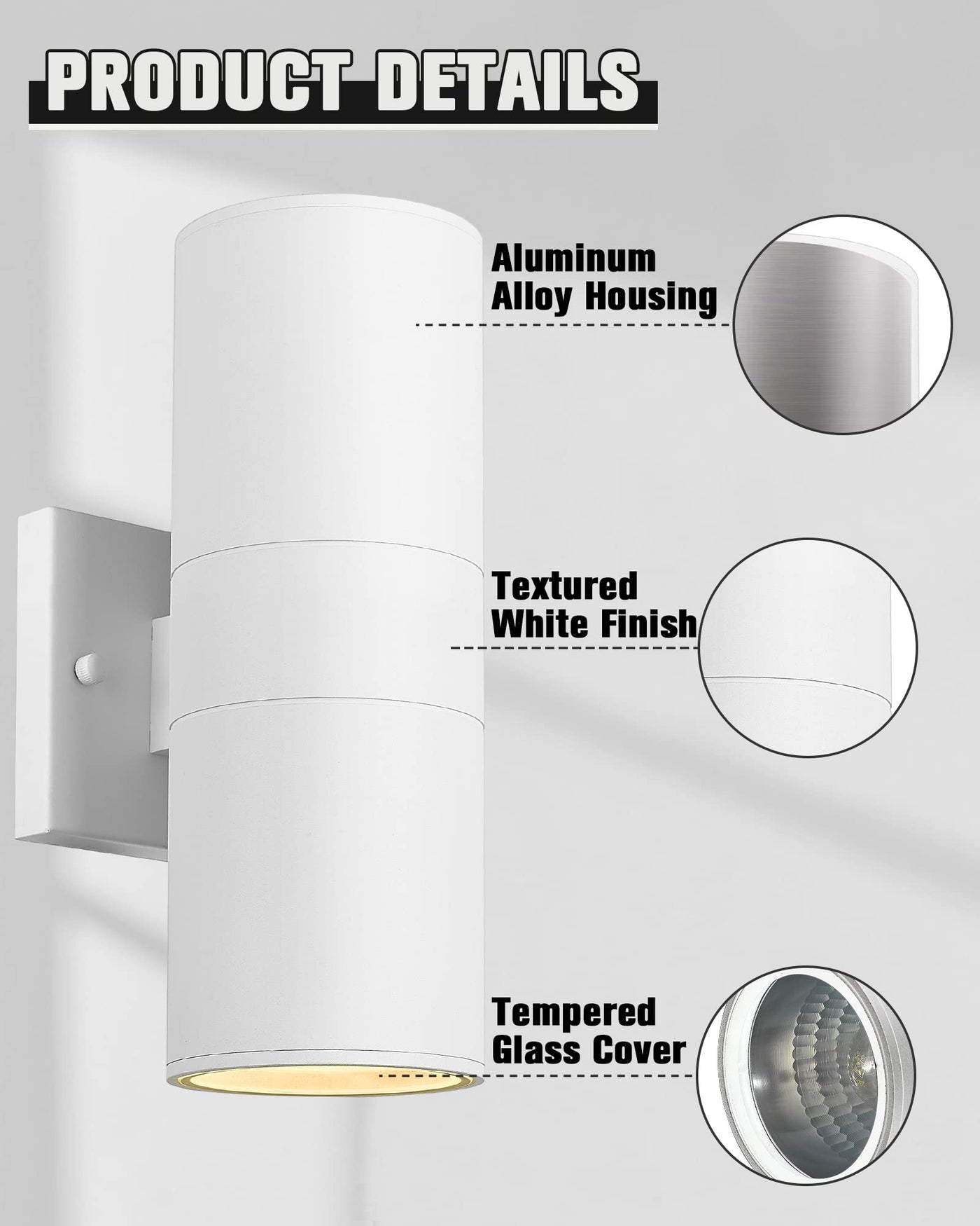 Ken & Ricky White Outdoor Wall Lights,Exterior Sconces Wall Lighting With Tempered Glass Cover,Cylinder Outside Light For House Porch Garage Front Door - 2 Pack