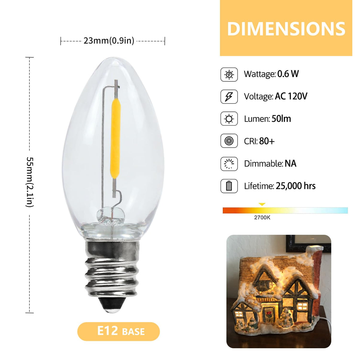 KGC 2 Pack Chainable Accessory Cord with C7 LED Light Bulb, 6 Ft Indoor Blow Mold Light Cord with Male and Female Plugs for Halloween Pumpkins Christmas Village Houses and Craft Projects Decoration.