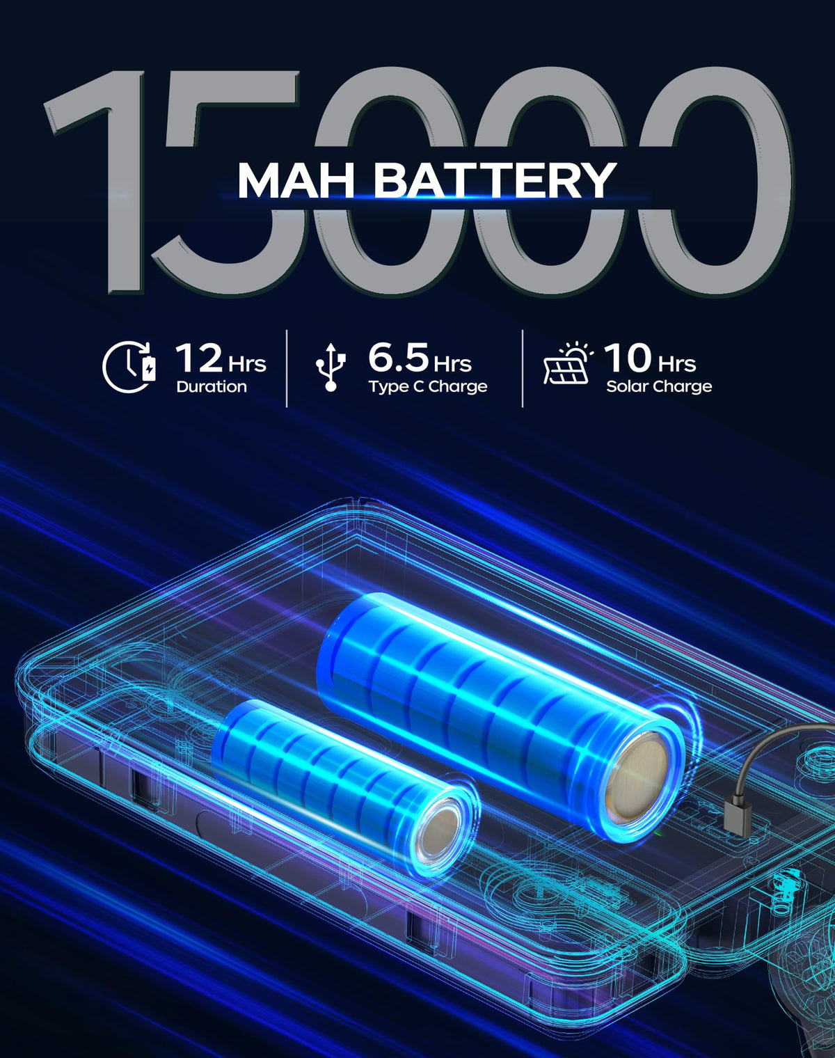 Q: What is the runtime of the KIALUSH work light on a full charge?A: With its powerful 15000mAh battery, the KIALUSH work light can provide up to 15 hours of continuous lighting, ensuring you have sufficient illumination for your night activities or outdoor adventures.