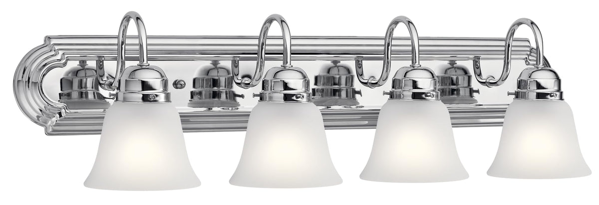 Kichler 30'' 4-Light Vanity Bath Light In Chrome, Modern Bathroom Light With Clear Satin Etched Glass, (''30'' W X 8'' H), 5338C