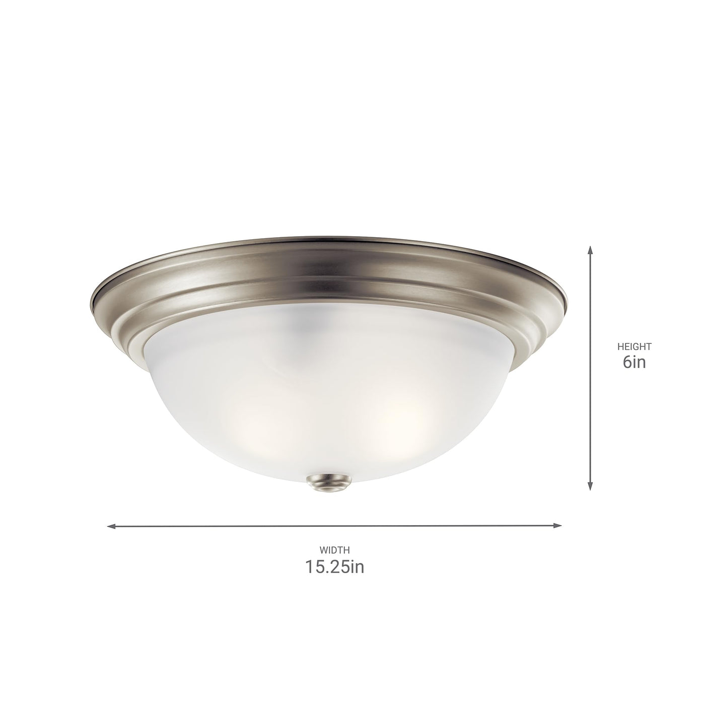 Q: What are the dimensions of the Kichler 8116NI Flush Mount Light?A: This ceiling light has a height of 6.5 inches and a width of 15.25 inches, making it a perfect fit for various spaces and ceiling heights.