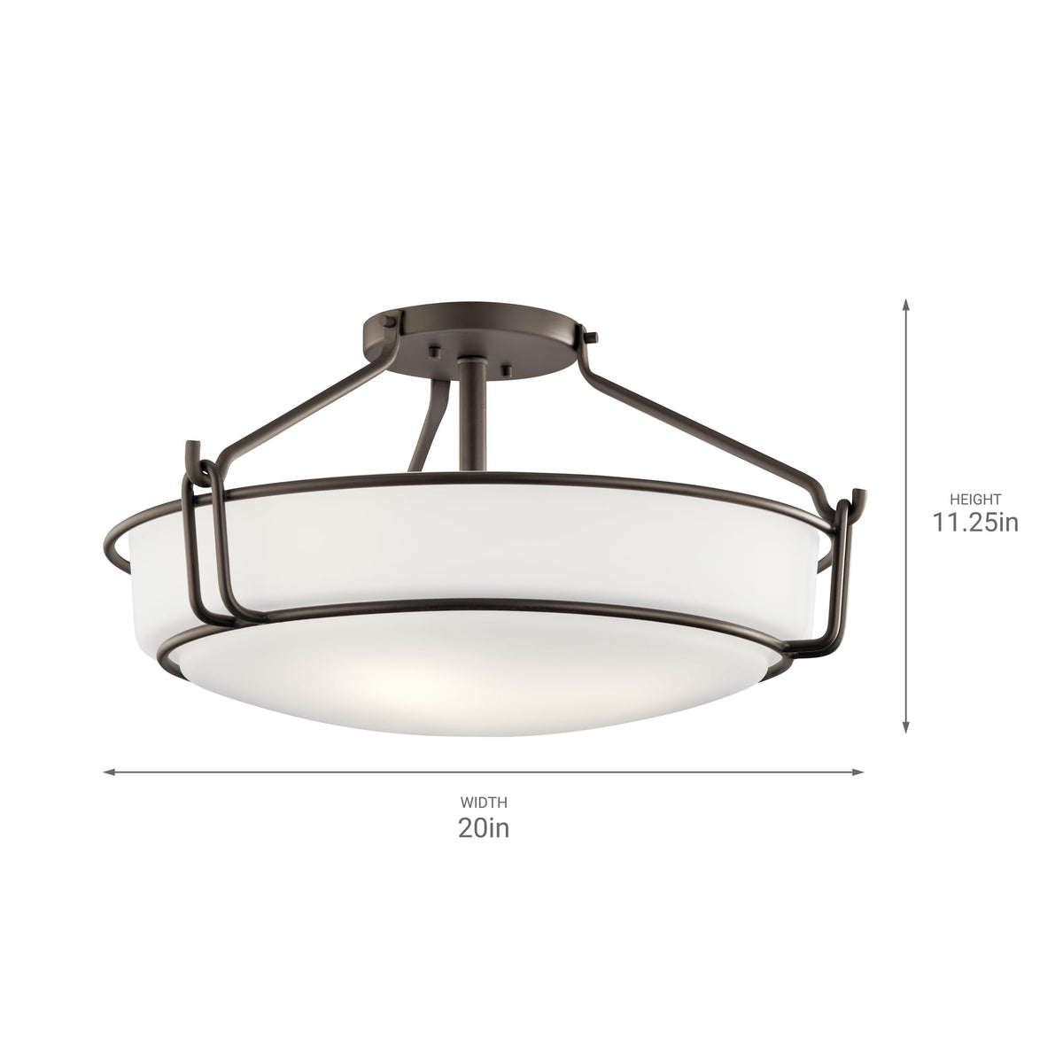 Kichler Alkire 22'' 4 Light Semi Flush With Satin Etched White Glass In Olde Bronze